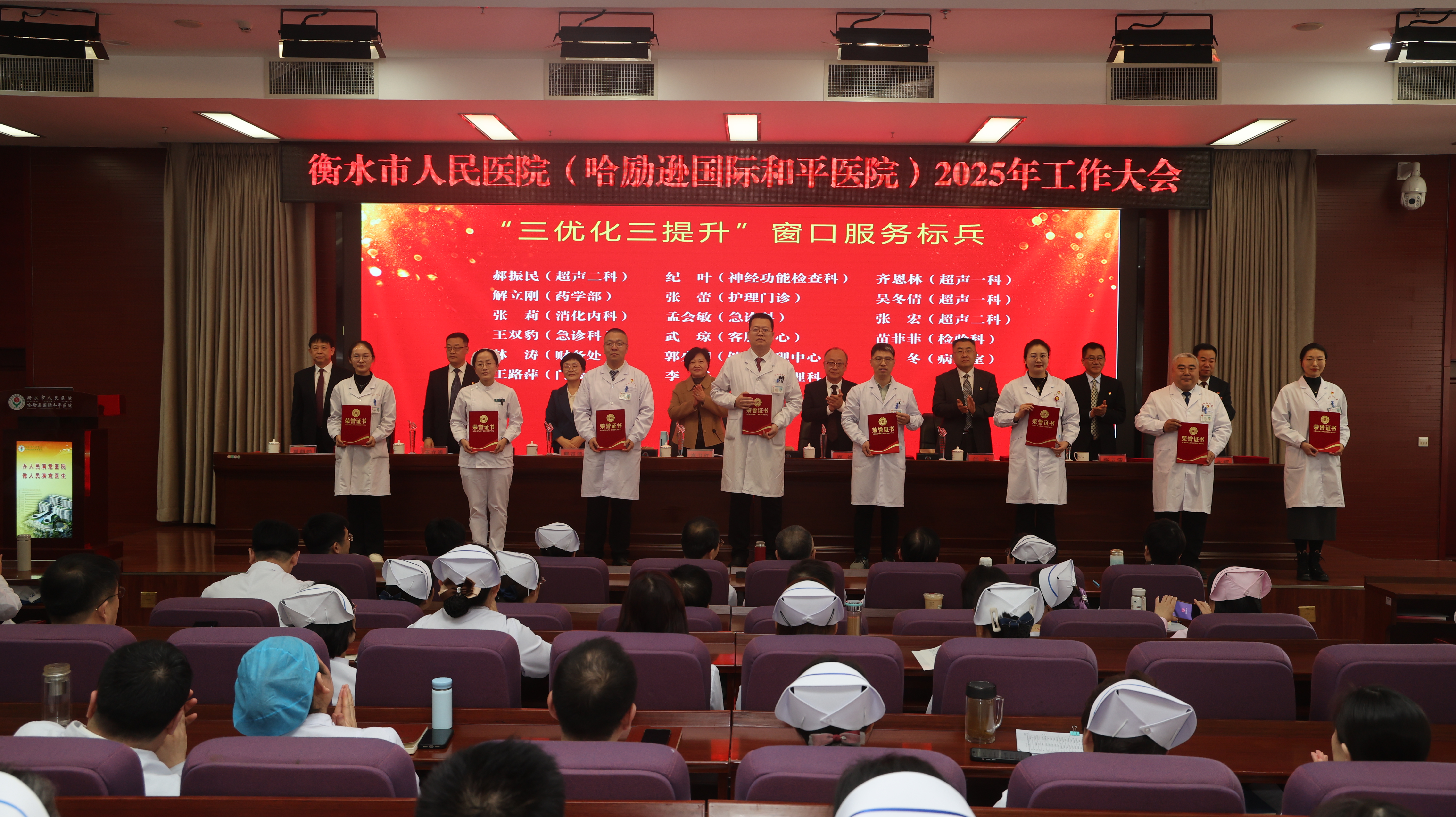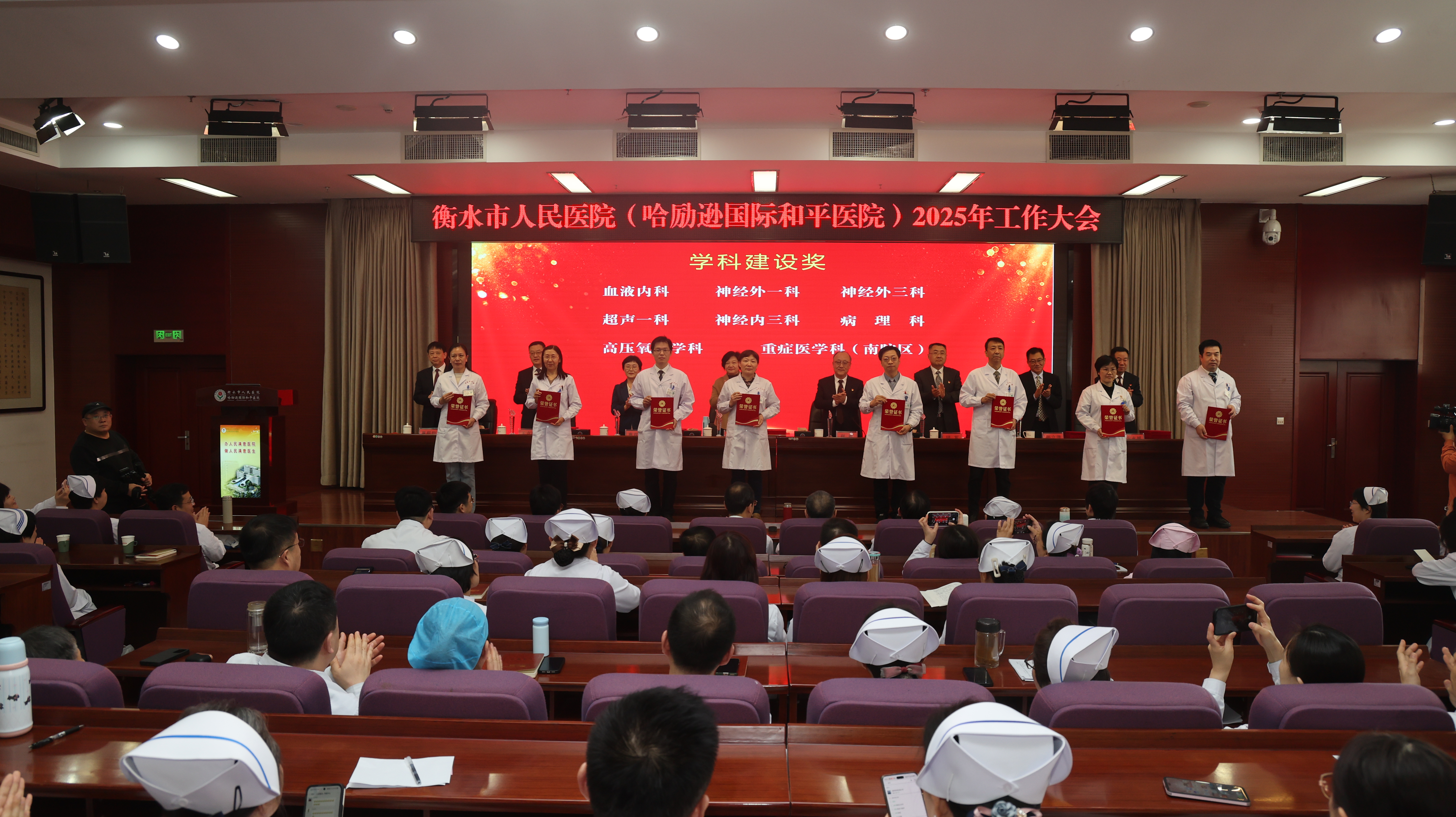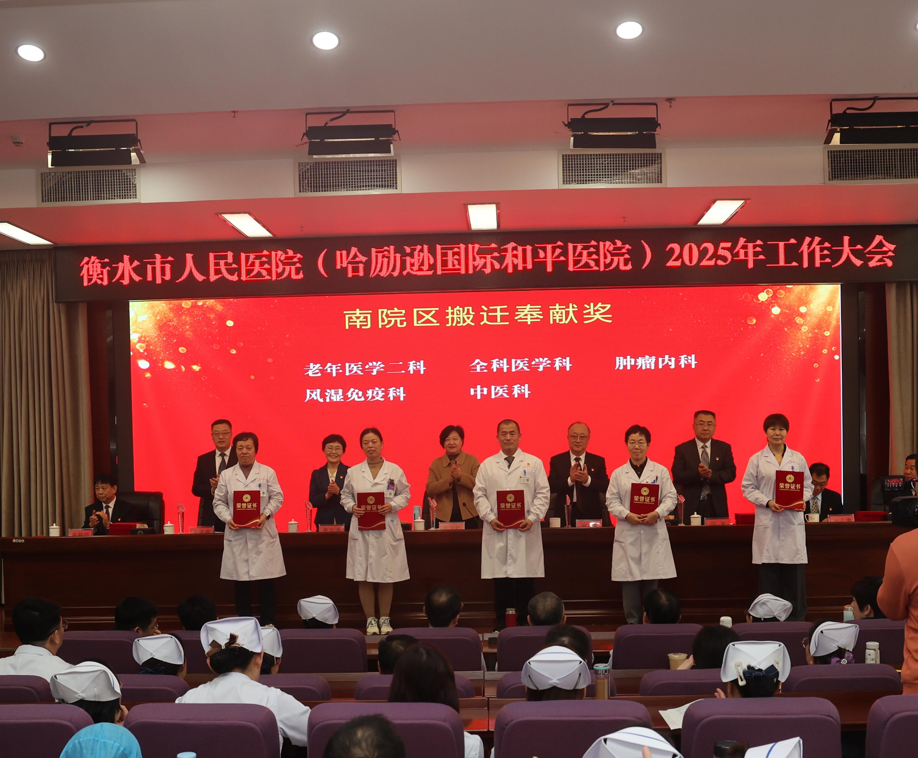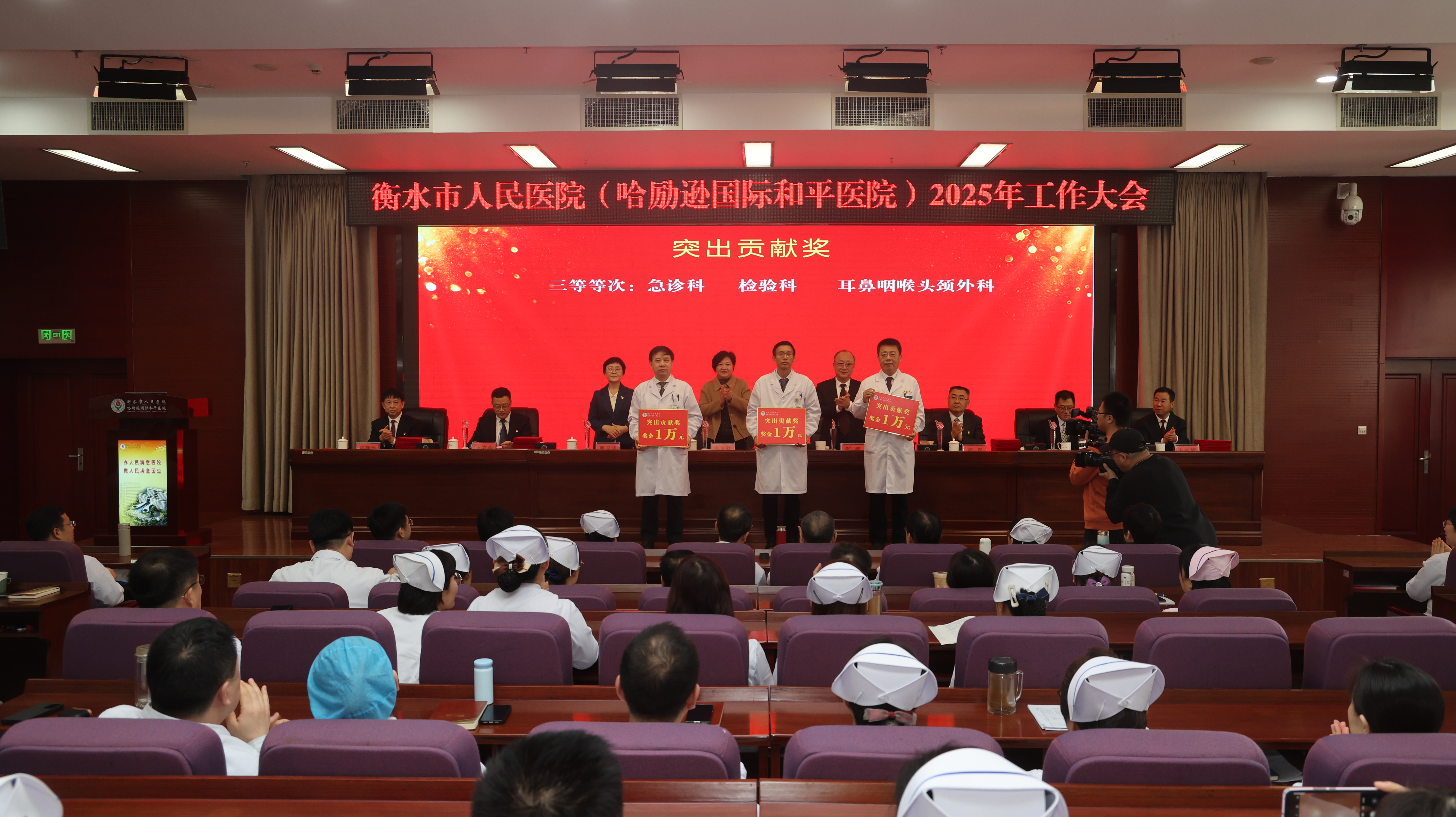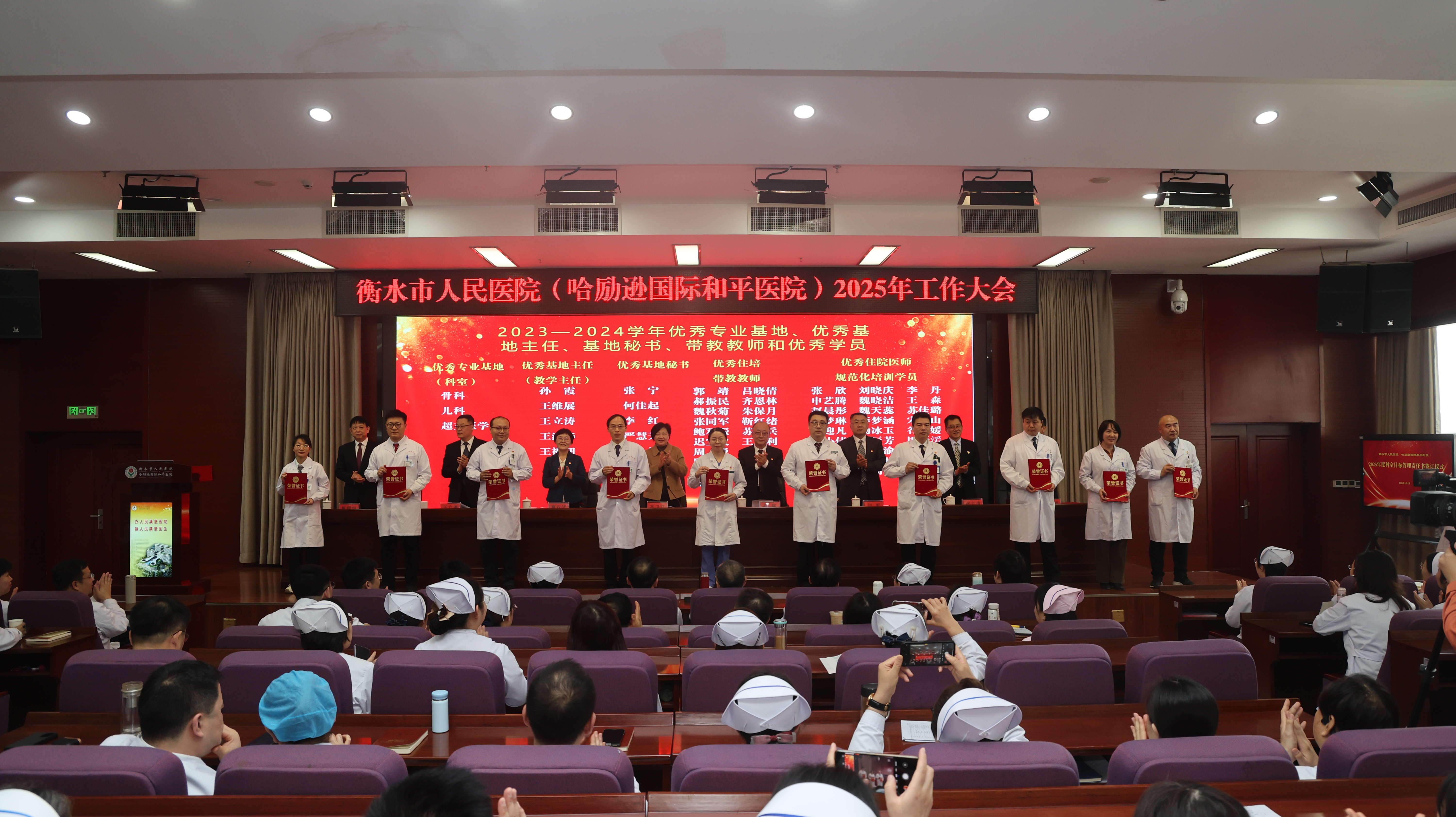 3月1日下午,衡水市人民医院(哈励逊国际和平医院)召开2025年工作大会,结合对国家政策动向的适时关注和对自身发展实际的精准把握,总结2024年工作,部署2025年任务,表彰先进典型,凝聚榜样力量,奋力推动高质量发展向上突围。