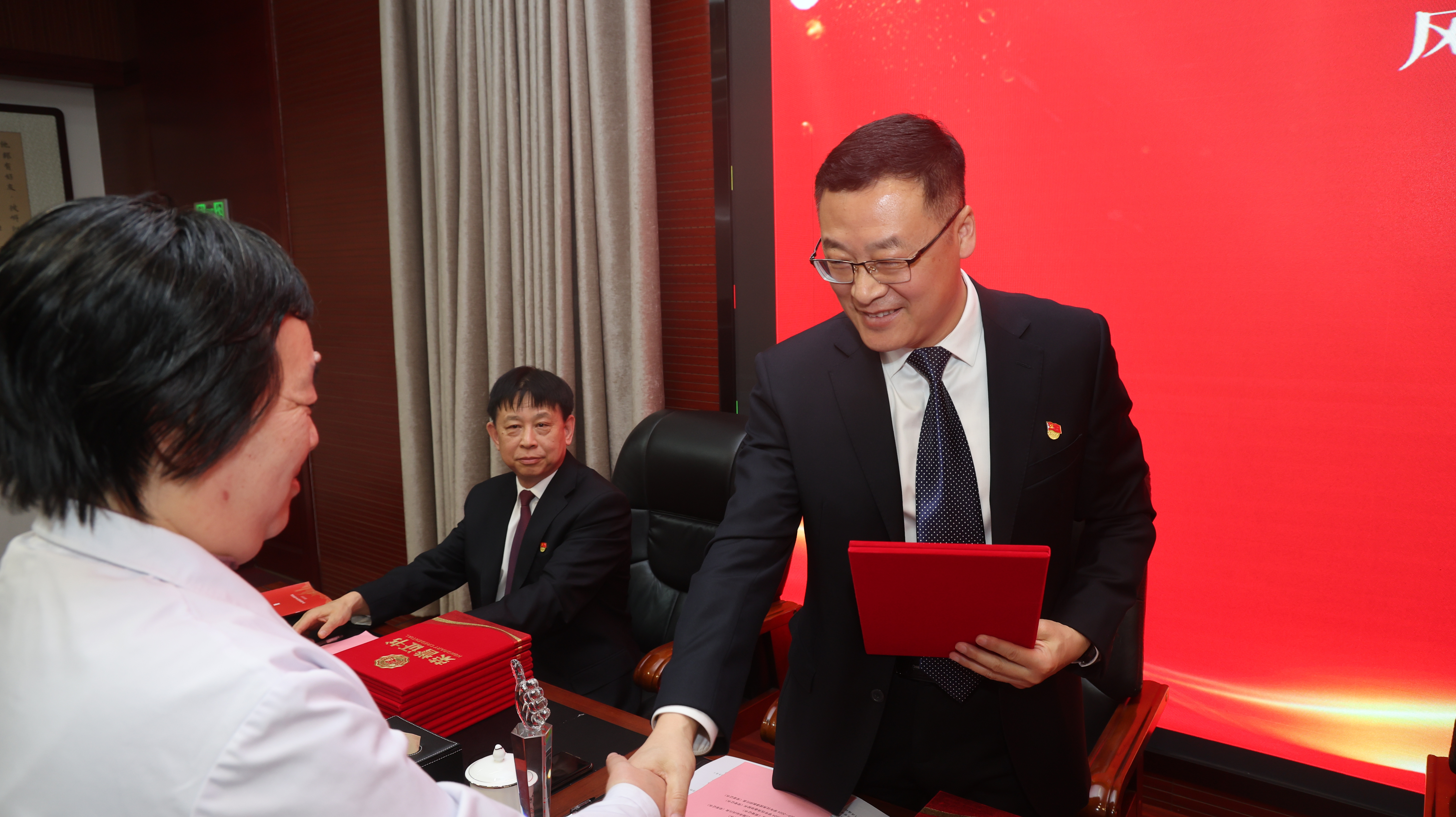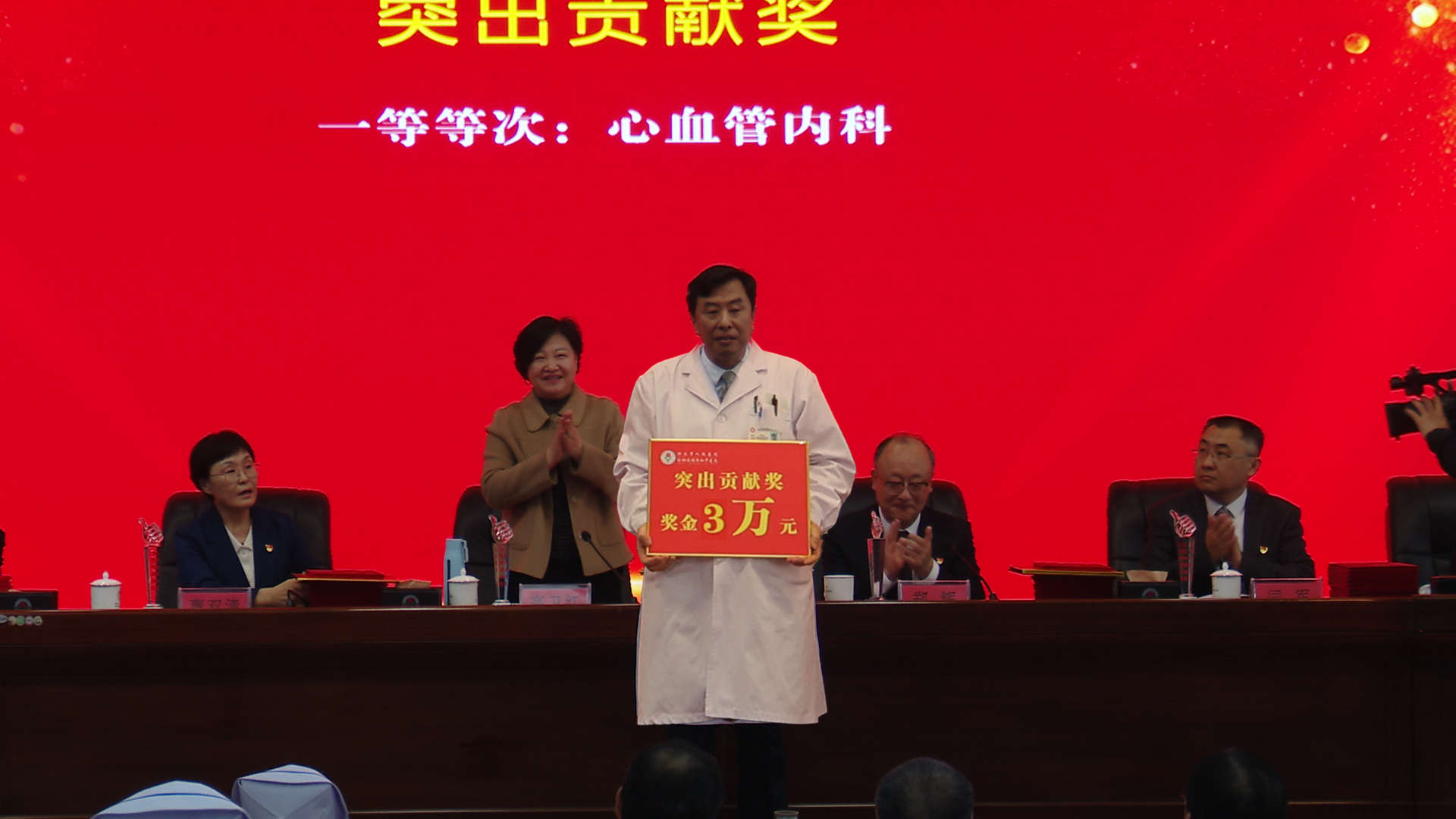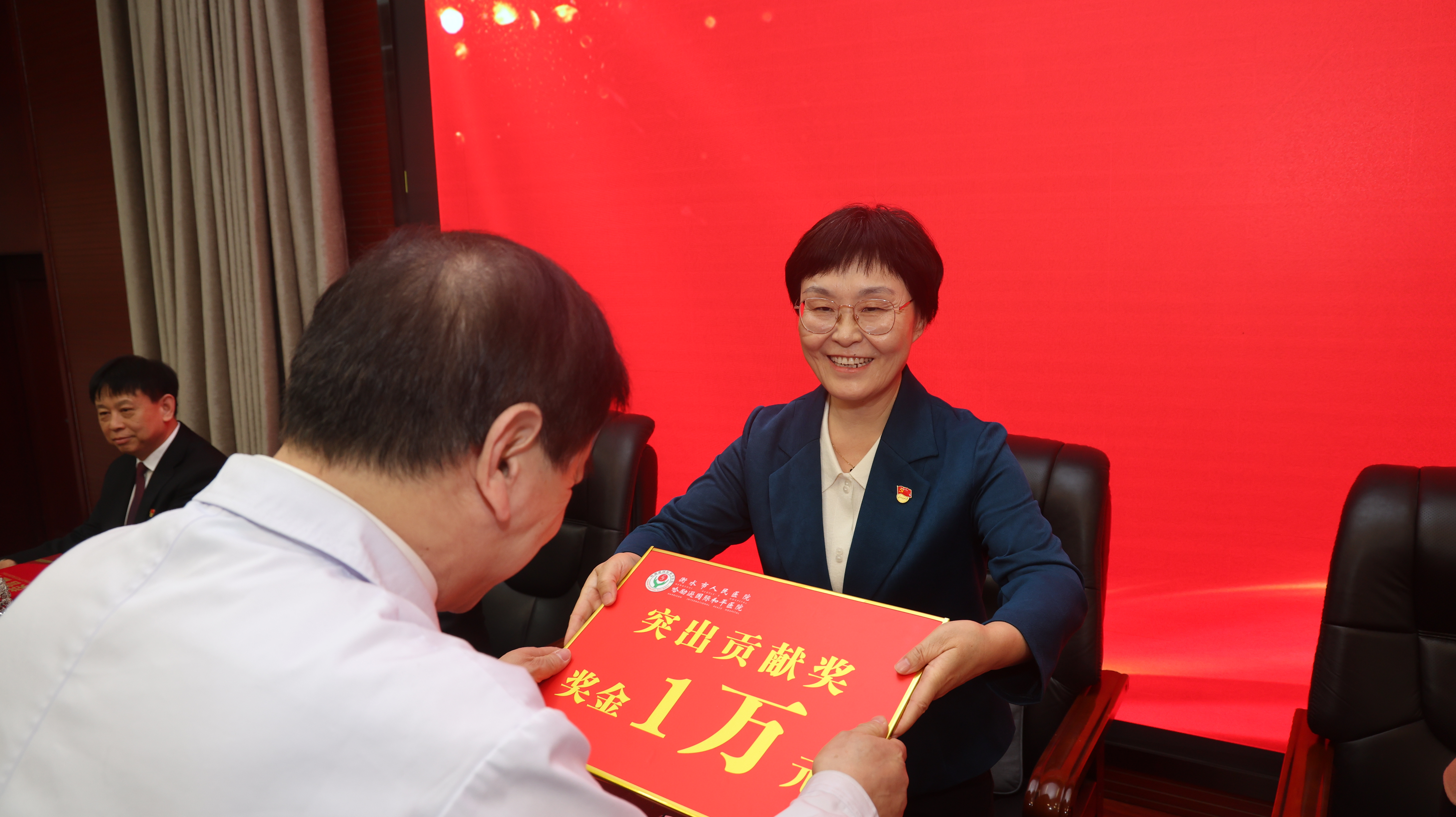 衡水市人民医院(哈励逊国际和平医院)党委副书记、院长曹双清为荣获突出贡献奖的科室颁发奖金。