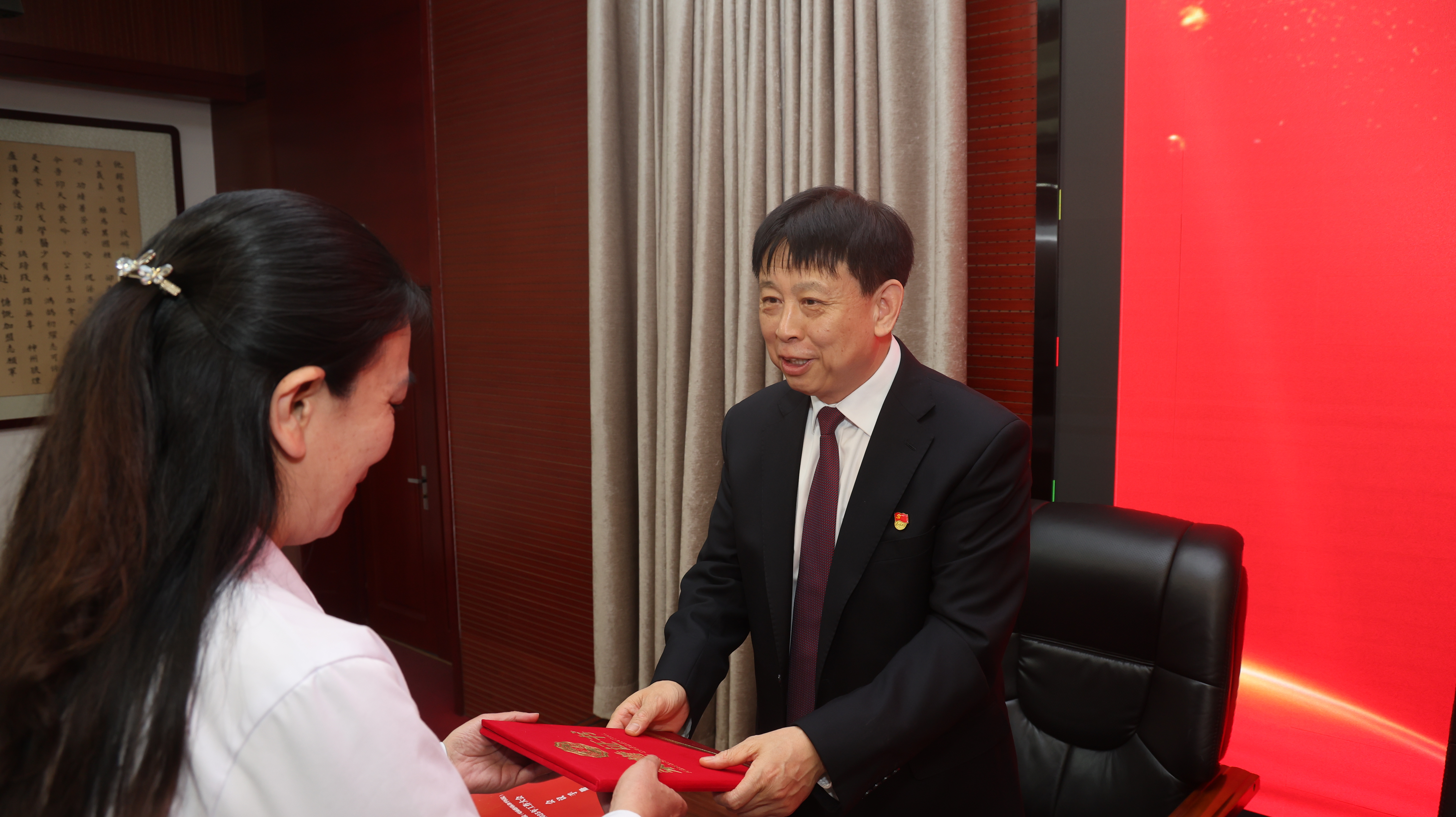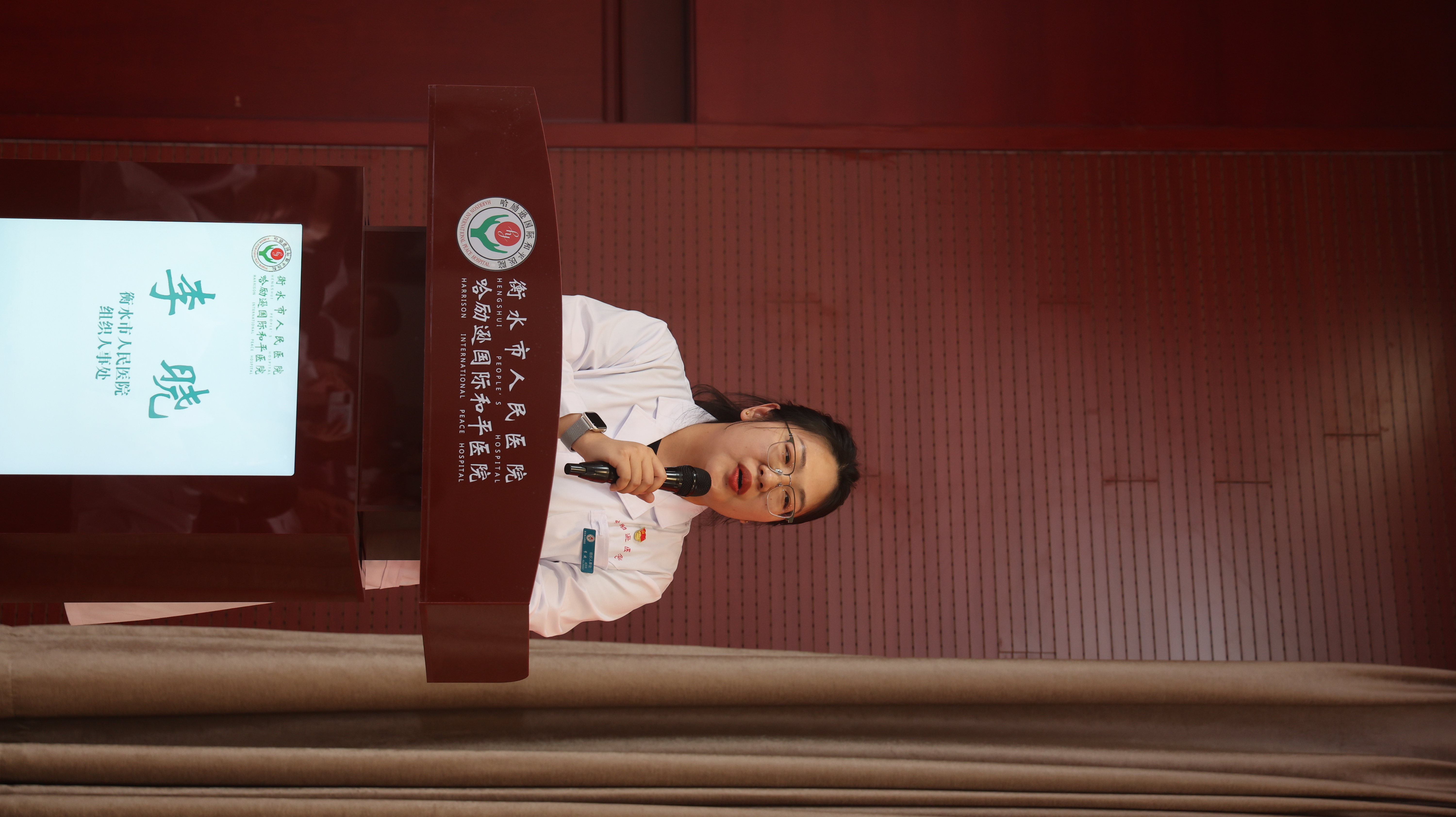衡水市人民医院(哈励逊国际和平医院)党委书记郑辉为先进工作者颁奖。
