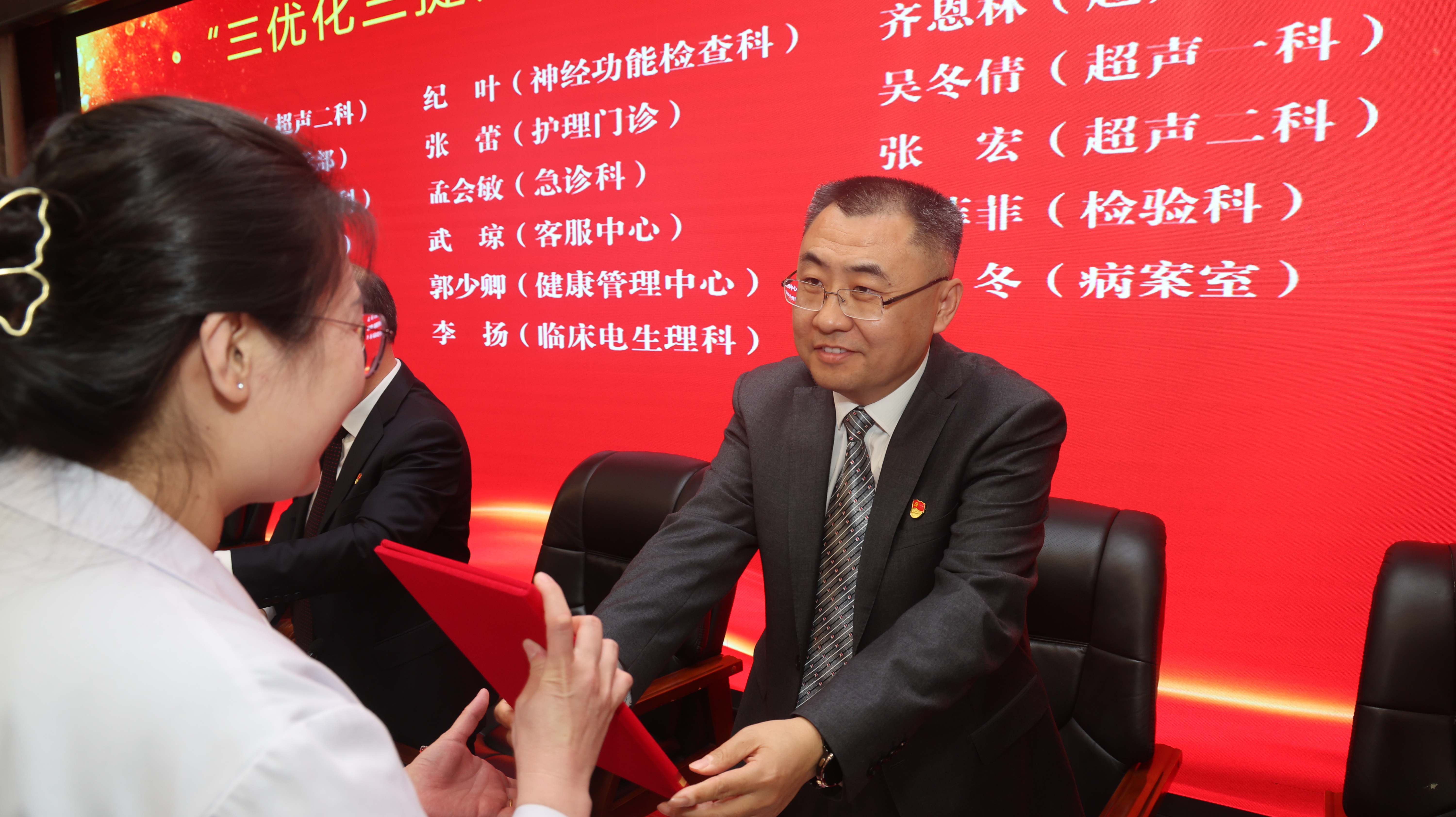 衡水市人民医院(哈励逊国际和平医院)党委副书记闫军为“三优化三提升”窗口服务标兵颁奖。