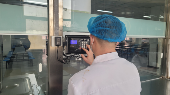 培训结束后,售饭打卡比赛正式拉开帷幕。比赛伊始,参赛职工们迅速进入状态,他们全神贯注,手指在打卡机上灵活舞动。每一次精准的刷卡操作,每一次快速的金额输入,都展现出他们日常工作中积累的娴熟技巧。售饭窗口前,虽然就餐学生络绎不绝,但职工们丝毫不乱,严格按照标准流程,在保证打卡准确性的同时,争分夺秒提高速度。