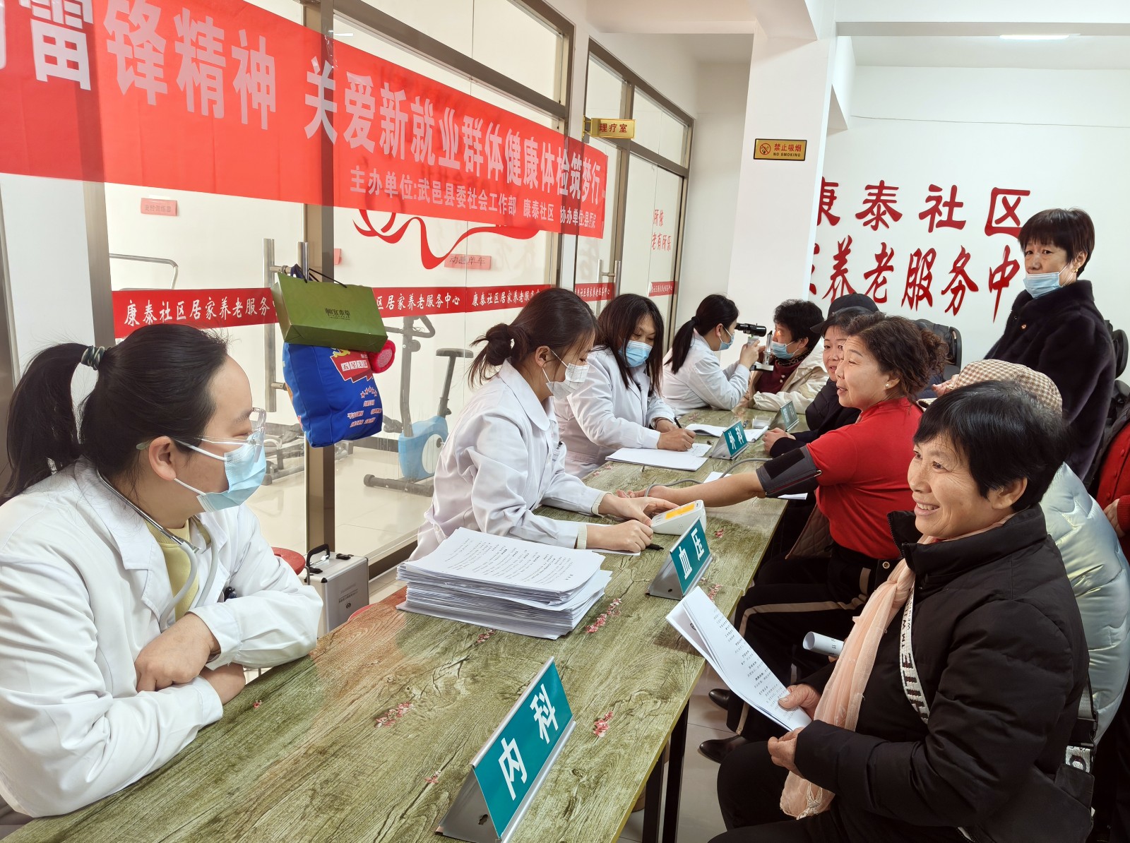 3月5日是第62个学雷锋纪念日,当日,武邑县康泰社区处处洋溢着温情,一场专为新就业群体精心筹备的爱心义诊活动在此展开。