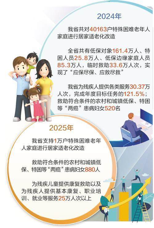 支持1万户特殊困难老年人家庭进行居家适老化改造,改善居家生活照料条件;救助符合条件的农村和城镇低保、特困等“两癌(宫颈癌和乳腺癌)”患病妇女880人;为残疾儿童提供康复救助以及为残疾人提供基本康复、职业培训、就业等服务25万人次以上……2025年,河北继续实施20项民生工程,其中,多项工程惠及困难老年人、残疾人等特殊群体。