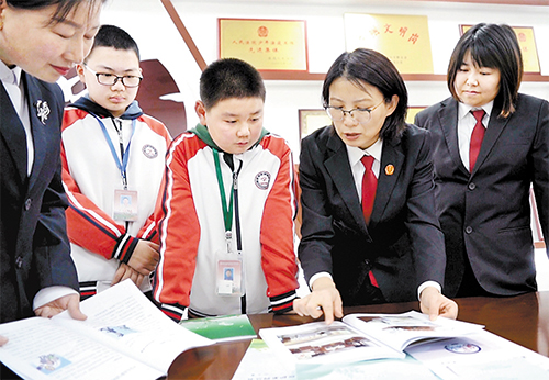 2024年12月2日,承德市中级人民法院少年审判庭庭长李亚平(右二)在承德市第二中学,给学生们做普法宣传。 本版图片均由受访者提供