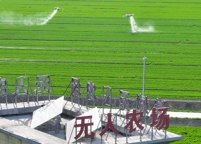 农业无人机按照事先设定好的线路进行自动喷洒农药作业(无人机照片)。图片来源:新华社
