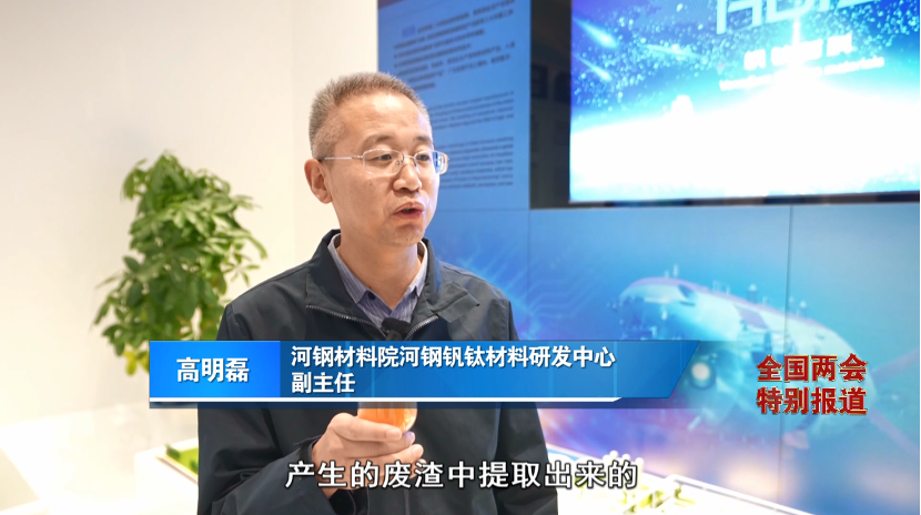 河钢材料院河钢钒钛材料研发中心副主任 高明磊:五氧化二钒这个产品,是我们从生产钒的过程中产生的废渣中提取出来的,这项技术是我们完全自主研发的全湿法提取技术。不仅实现了无害化废渣的减量化的处置,还实现了钒铬有价元素的全部利用。广泛应用在航空航天,化工,还有新能源储能领域。目前是全球独一份。