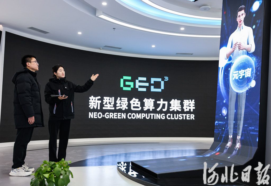2月8日,客人在合盈数据(怀来)科技产业园展厅参观。河北日报记者李佳泽摄