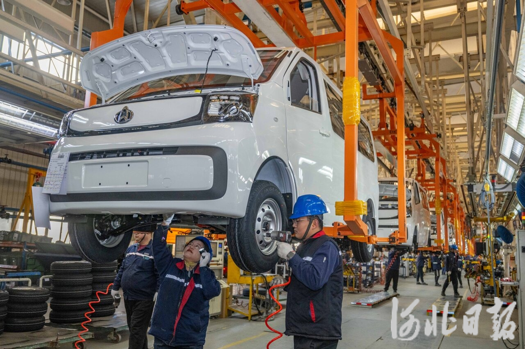 1月10日,河北长安汽车有限公司新能源汽车生产线,工人在组装汽车。河北日报记者赵杰摄