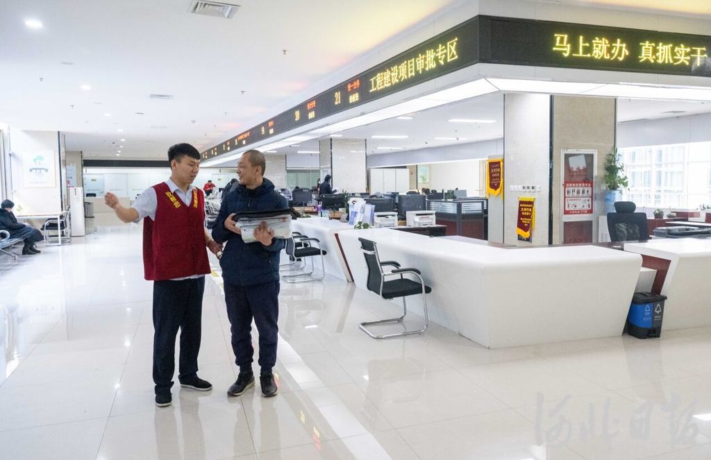 2月27日,怀来县政务服务中心工作人员为办事群众讲解项目审批办理程序。 河北日报记者 耿辉摄