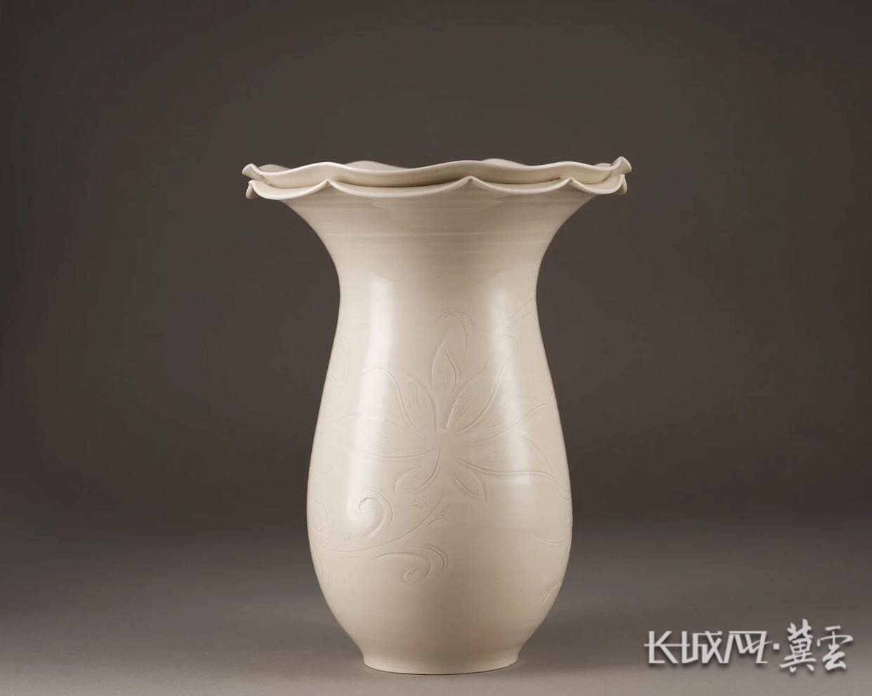 “定瓷烧制技艺在元代曾经一度失传。直到二十世纪二三十年代,定窑遗址才在曲阳县被发现。到1976年,在陈文增、和焕、蔺占献三位老师的带领下,我们才把定瓷的传统技艺恢复过来。”庞永辉介绍,在前辈的定瓷刻花造型基础上,他又对定瓷的薄胎拉坯、跳刀纹等技艺加以研究,使之进一步提升。