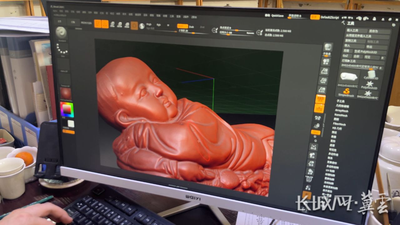 在陈氏定窑生产车间,一件仿制的故宫“孩儿枕”定瓷艺术品吸引了记者的目光。庞永辉告诉记者,这是专门为故宫文创的定制定瓷文物仿品。“为了最大程度还原文物风貌,我们利用3D扫描技术,进行数据采集和三维建模,首次实现了对宋代定瓷的1∶1精准仿制。”