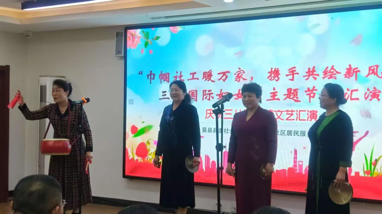 为庆祝第115个“三八”国际劳动妇女节,3月7日,景县县委社会工作部组织8个社区的社工及旗袍会志愿者、银龄志愿者联合举办“巾帼社工暖万家,携手共绘新风尚”文艺汇演,以精彩表演向妇女同志们致以节日的祝贺与美好的祝福。