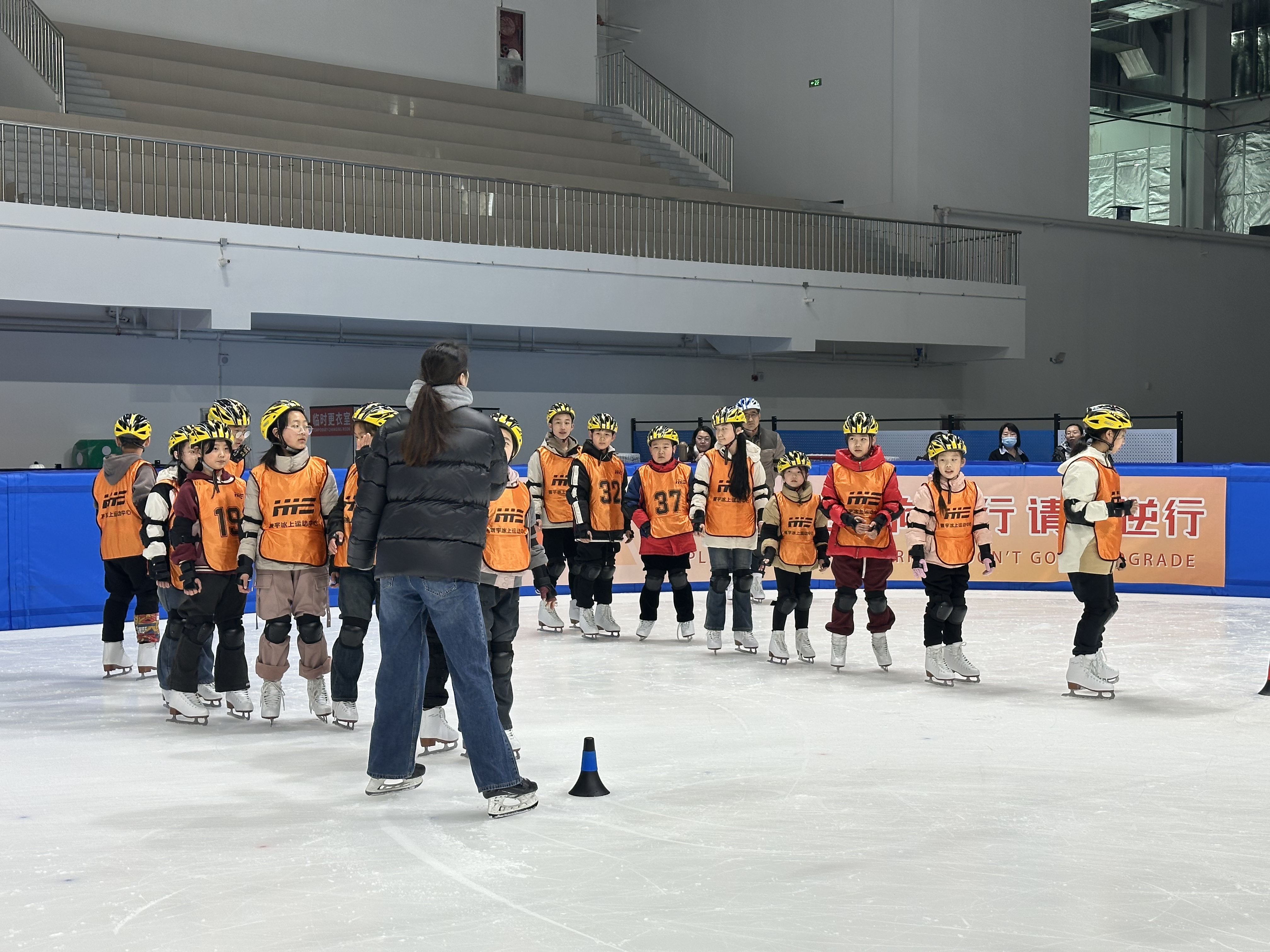 当天下午,小记者们来到寰宇冰上运动中心,在教练的指导下,穿戴好各种护具和冰鞋。