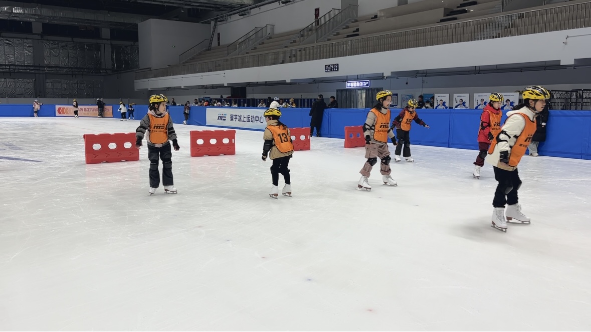 “里面是真冰吗?”“和旱冰有啥区别?”“摔倒了会不会很疼?”带着一肚子问题,小记者们慢慢进入冰场,扶着防撞垫子慢慢适应场地。