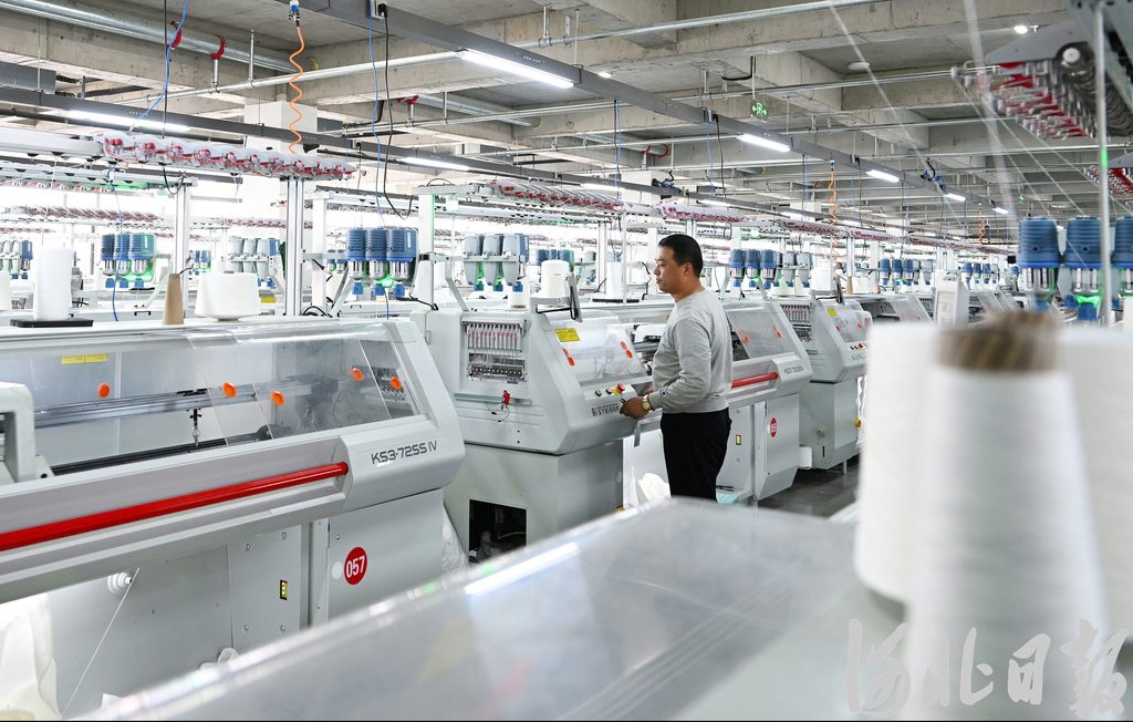 1月17日,在清河县新华·慈星羊绒针织数字化共享工厂,工人利用全自动电脑针织横机生产羊绒服饰。河北日报记者赵永辉摄