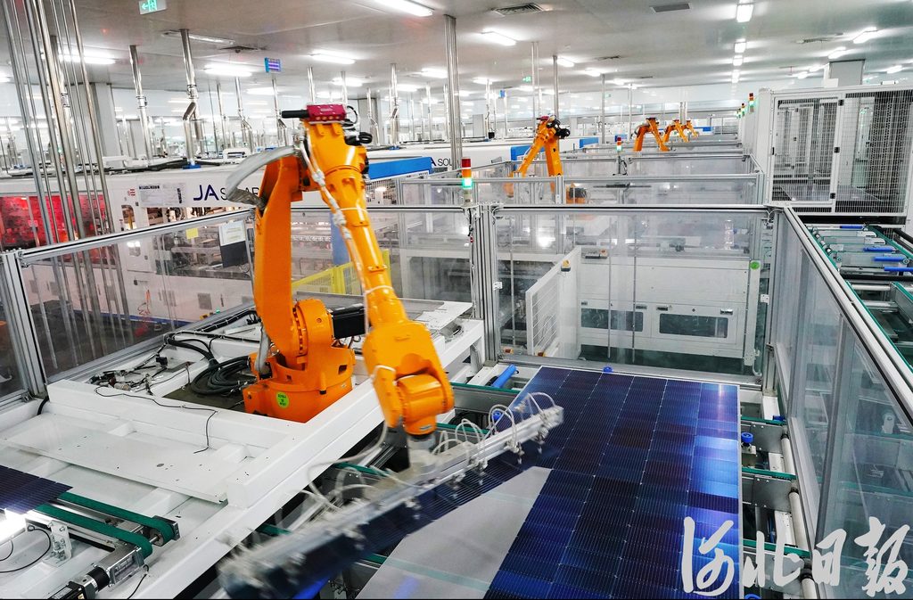 2024年1月3日,晶澳(邢台)太阳能有限公司机械手在光伏组件生产线工作。河北日报记者赵永辉摄(资料片)