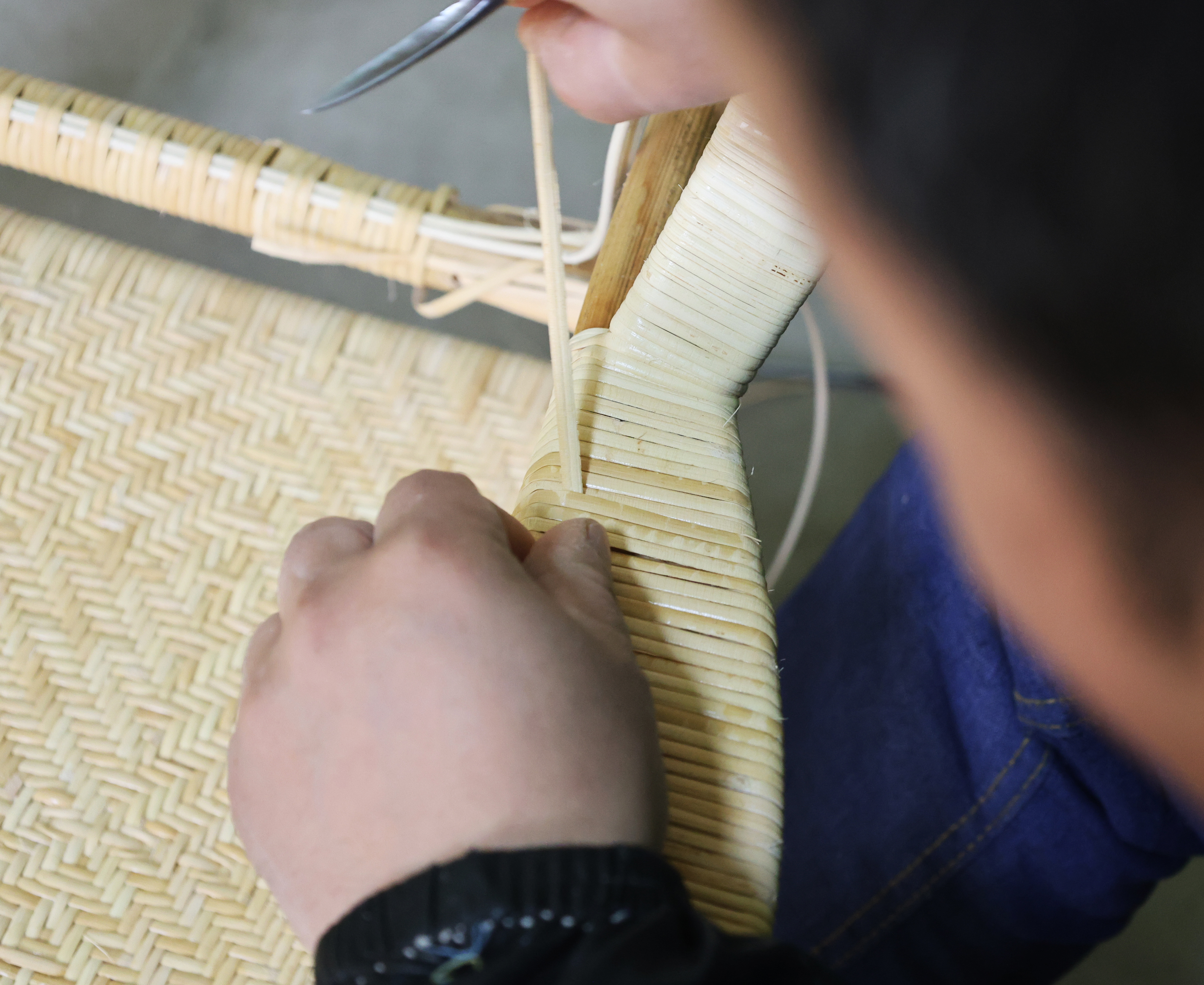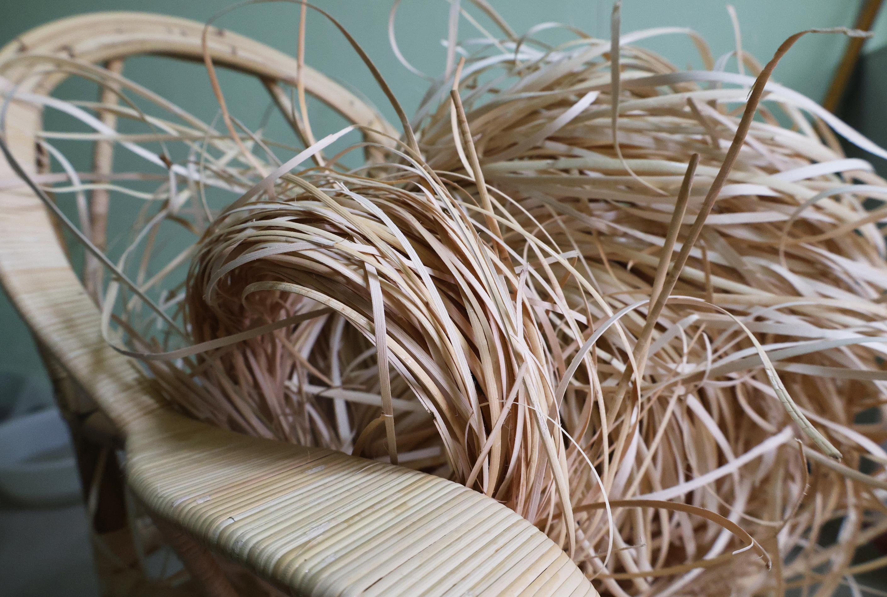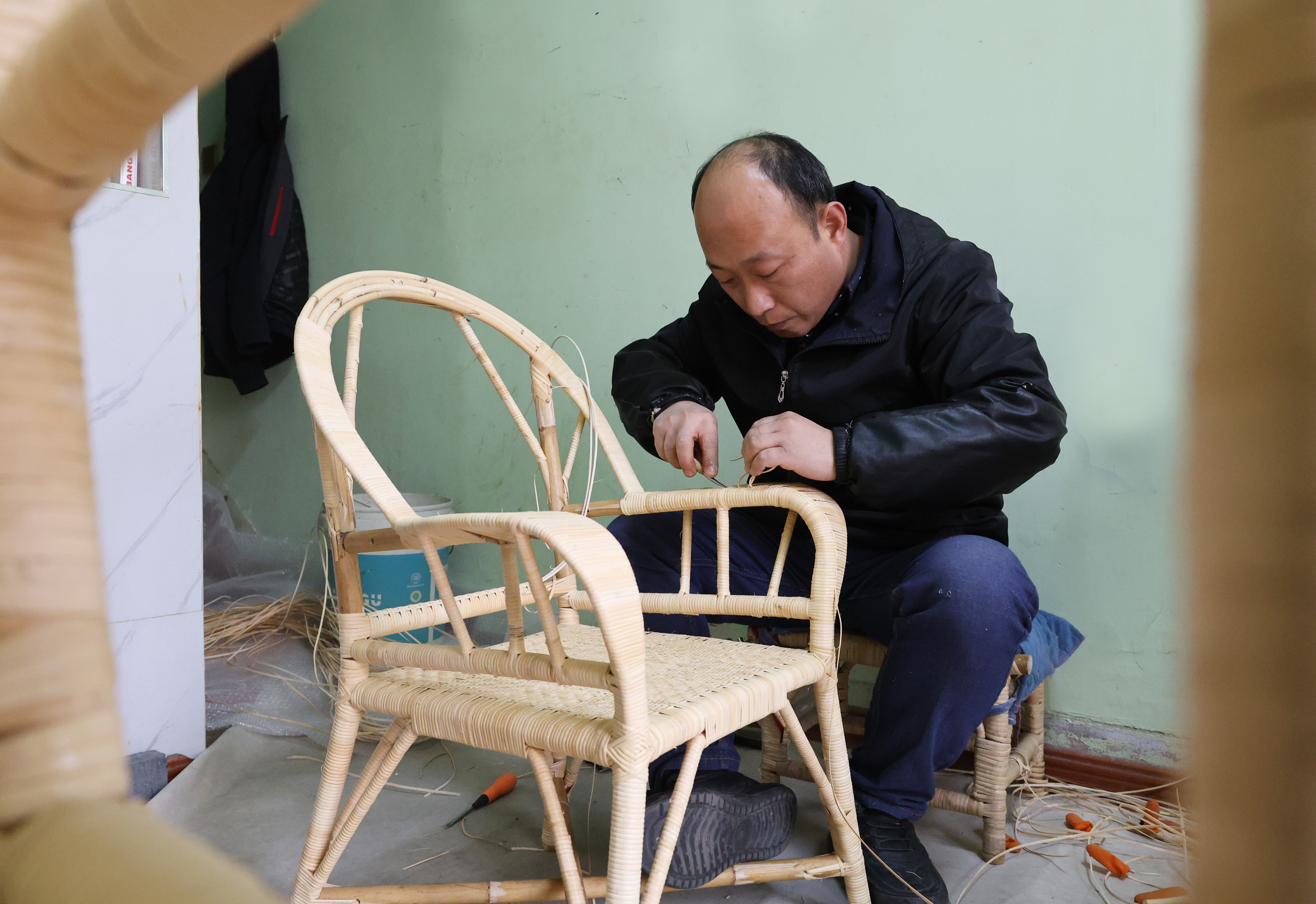 郑兰州制作藤椅选用的是印尼进口的纯天然藤皮,“这种藤皮韧性好,特别有弹性,还不生虫。从椅子支架到椅背、椅座,都是用它制成,耐用又美观。”他说道。在他眼中,藤椅轻巧大方,细密交织的藤皮散发着古朴、清爽的气息,能与其他藤制家具一起,营造出回归自然的独特氛围。