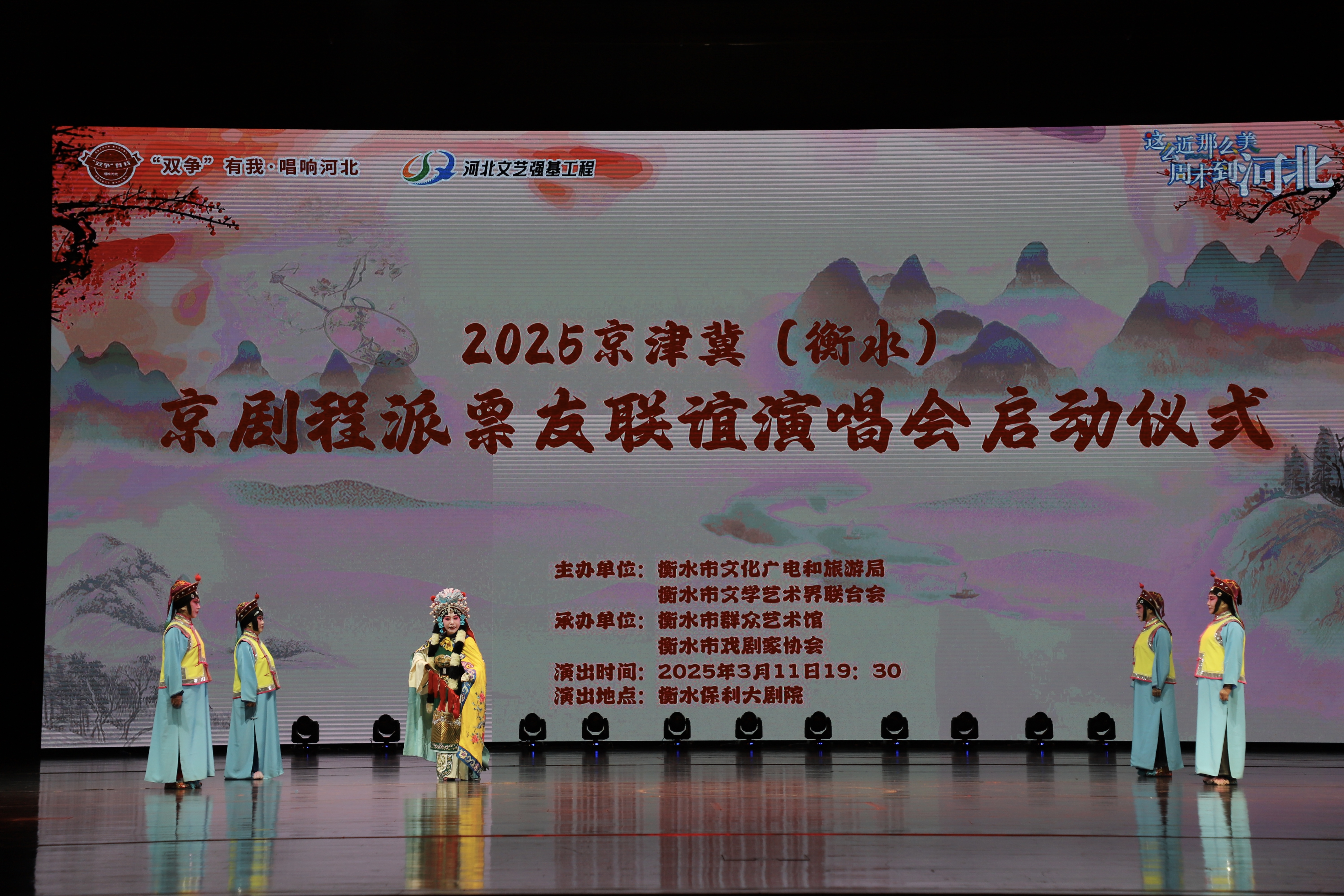 本次活动由衡水市文化广电和旅游局、衡水市文学艺术界联合会主办,衡水市群众艺术馆、衡水市戏剧家协会承办。当晚19时30分,启动仪式正式开始,与会相关单位领导共同轻触“启动柱”,正式拉开2025京津冀(衡水)京剧程派票友联谊演唱会序幕。