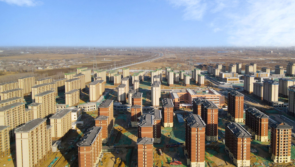 2月17日,无人机拍摄的雄安新区容东大河片区安置房及配套设施工程标段二项目。