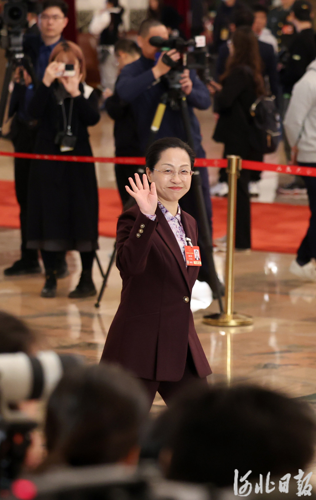 3月8日上午,裴红霞代表走上“代表通道”。