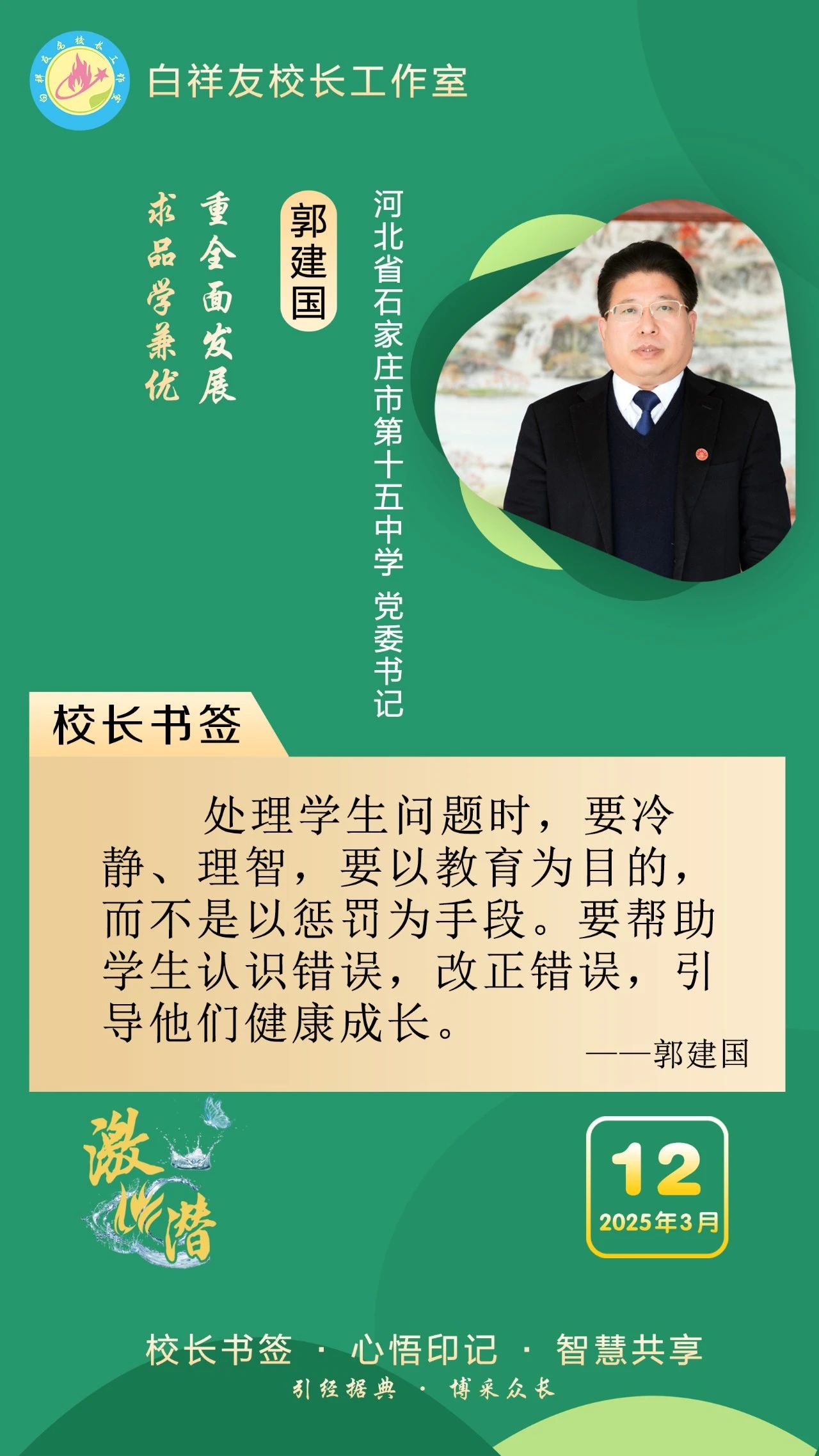 “白祥友校长工作室”成立于2019年4月,是教育部“国培计划”中小学名校长领航工程、河北省首批名校长工作室,目前省内外成员校56个。工作室坚持“资源共享、智慧共融、互助共赢”理念,已成为思想碰撞的交流场,资源共享的品牌站,成果展示的辐射源。