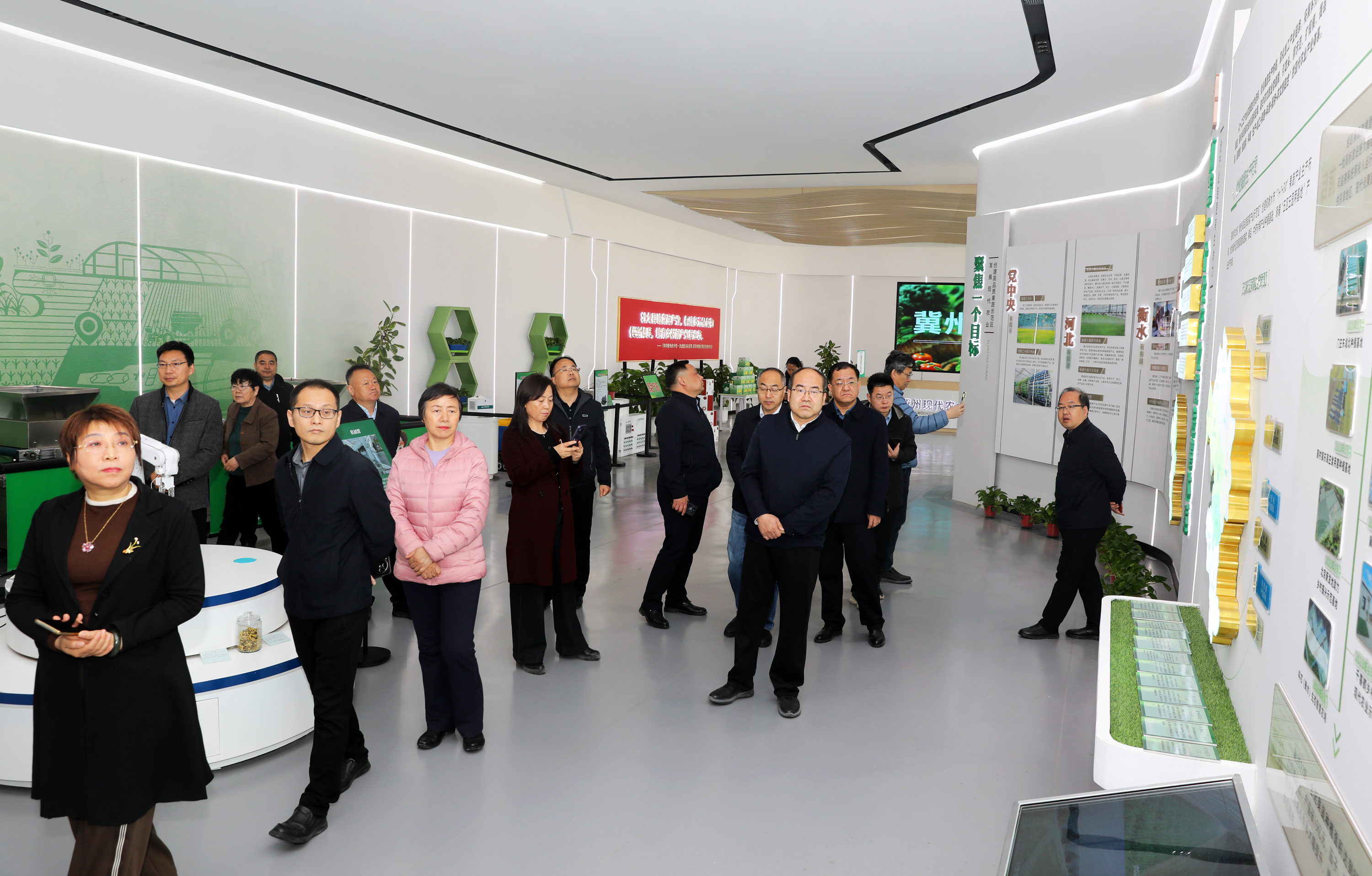 签约仪式结束后,一行人前往北京新发地衡水(冀州)农副产品智慧物流中心、现代农业融合创新基地等多地进行实地调研。在调研现场,专家们认真考察,与当地工作人员深入交流,详细了解冀州农业的现状和发展需求。各团队之间积极对接,从种植技术到产业规划,从市场销售到人才培养,进行了全方位、多层次的探讨,为后续的深度合作找准了方向,明确了重点。