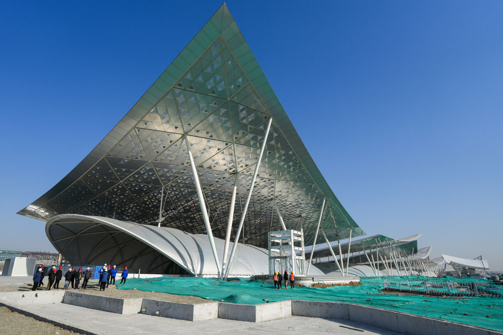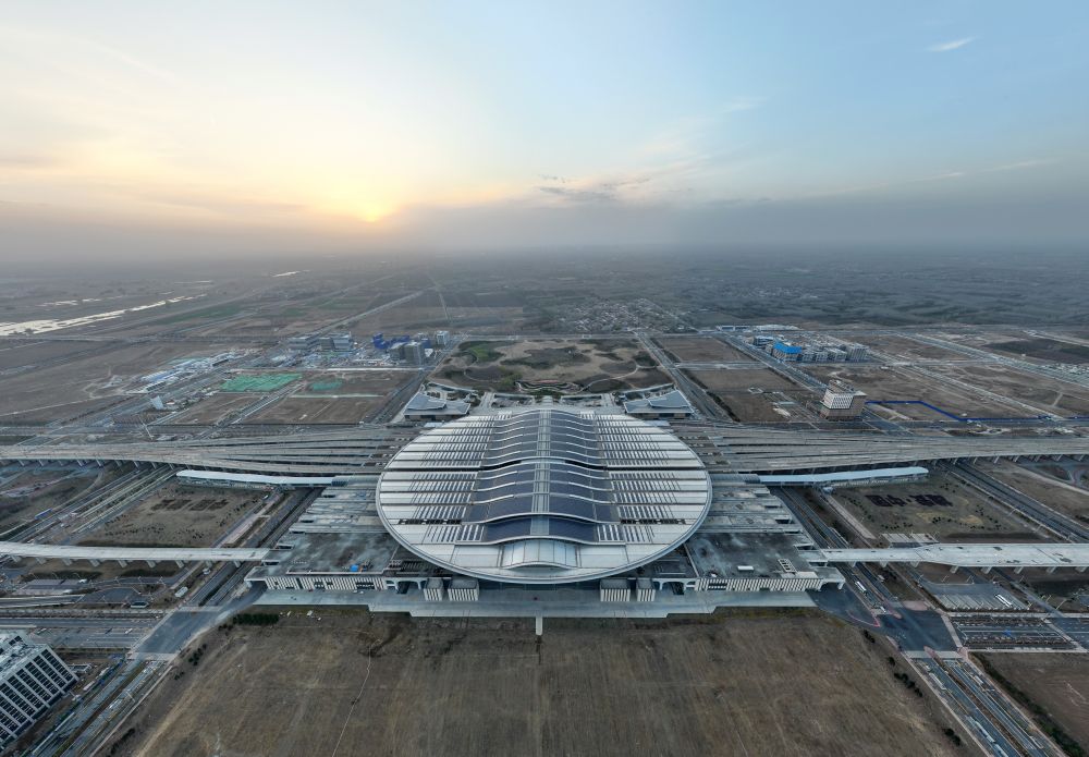 2025年2月26日拍摄的北京城市副中心站综合交通枢纽工程和“京帆”屋盖。新华社记者 鞠焕宗 摄