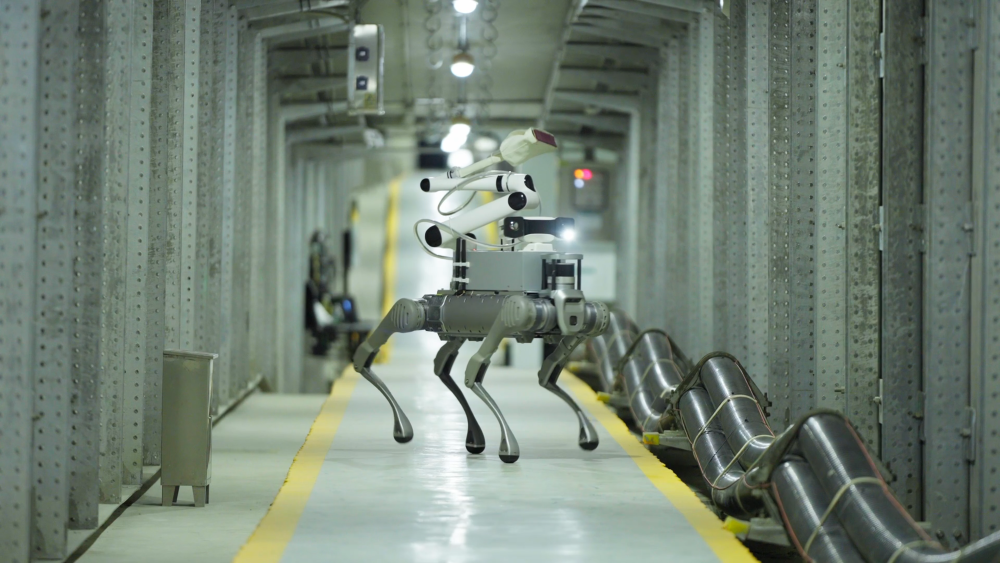 一台足式巡检机器人在雄安新区雄东电缆隧道巡检电缆线路。受访者供图。