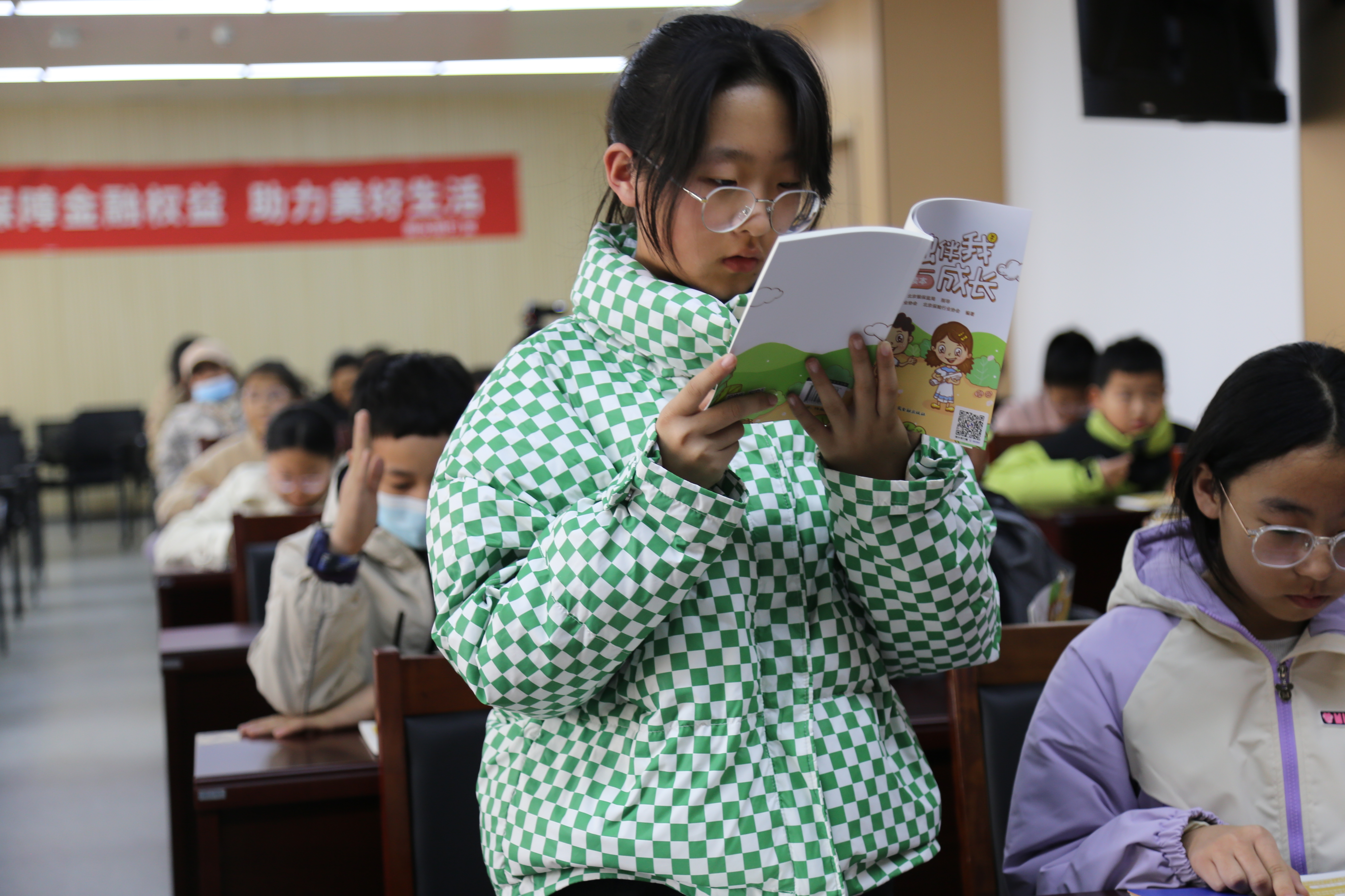 衡水银行战略消保部副总经理林青为小记者们普及了货币发展历史、货币职能等金融知识。为在更广范围普及防范电信诈骗等知识,林清还结合生活中常见的游戏充值、房贷、保险、征信等案例详细讲解《金融伴我成长(小学习读本)》部分章节。随着讲解的深入,一个个问题随后抛出,小记者们争先恐后地回答,金融知识得到了强化。