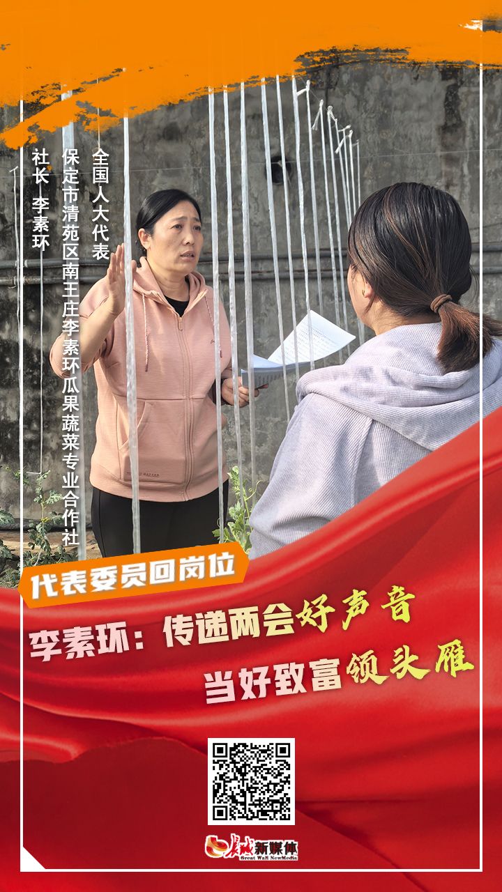 “土地承包到期后再延长30年试点范围又扩大了……”“还有一个好政策,就是咱们60岁以上的农民,养老金又涨了20块钱……”3月13日下午,全国人大代表、保定市清苑区东闾镇南王庄李素环瓜果蔬菜专业合作社社长李素环向村民们传达有关“三农”的好消息。