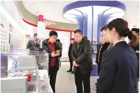 近日,北京大学邯郸创新研究院举办企业家研修班。图为企业家参观研究院展厅,了解科研产品。 北京大学邯郸创新研究院供图