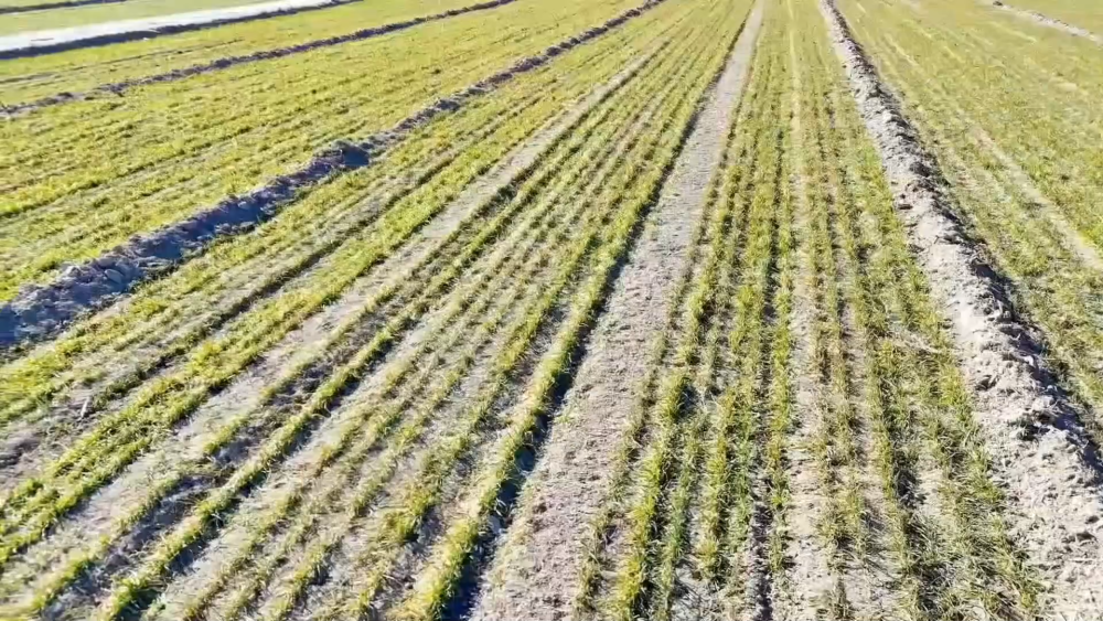 在河北省深州市前营试验示范田,大地泛起绿意,冬小麦进入返青期。据了解,这片试验示范田所用的种子为河北省农科院旱作所研发的衡麦系列节水小麦新品种。