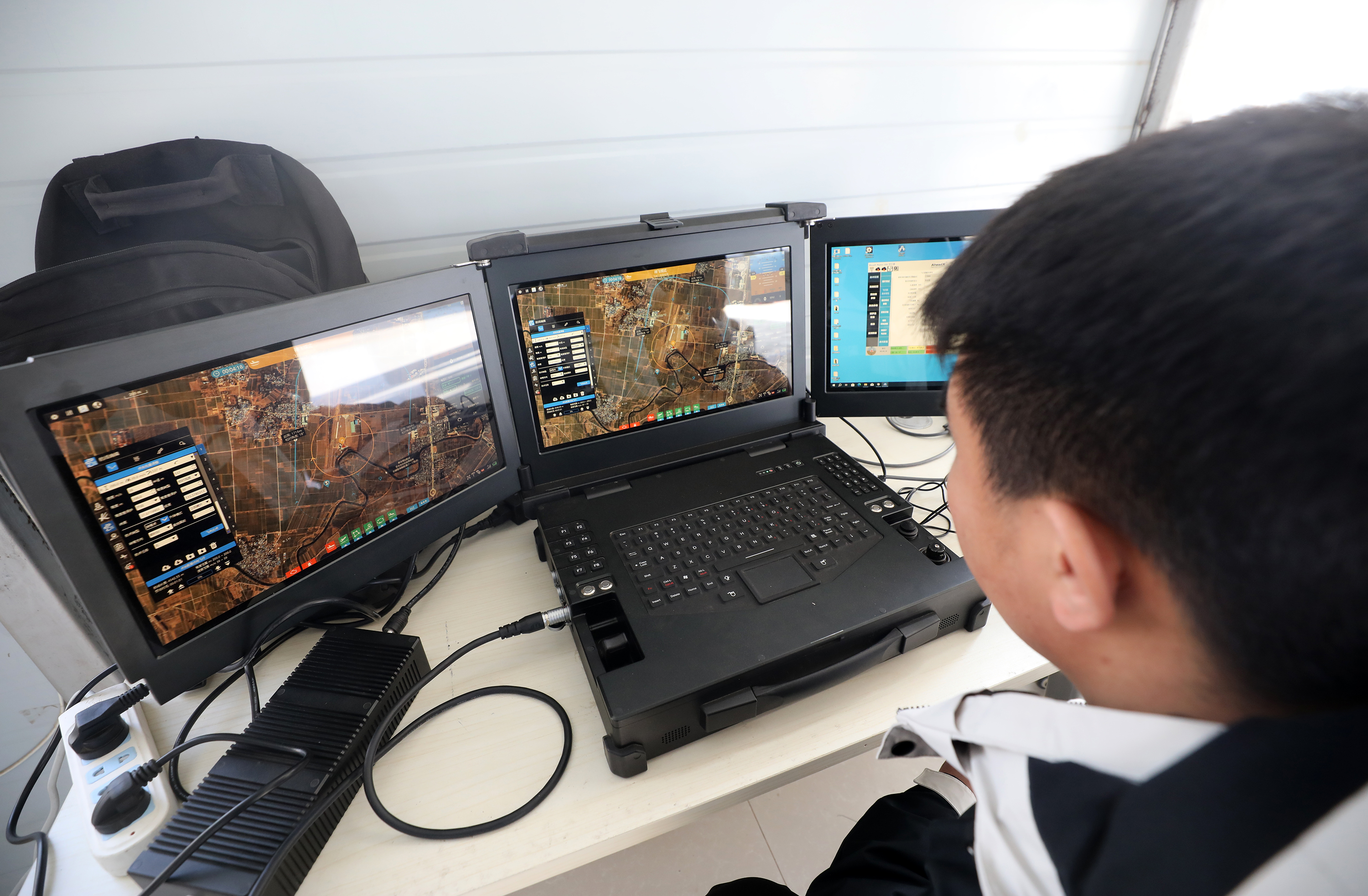 工作人员正在制定航线。陈康 摄