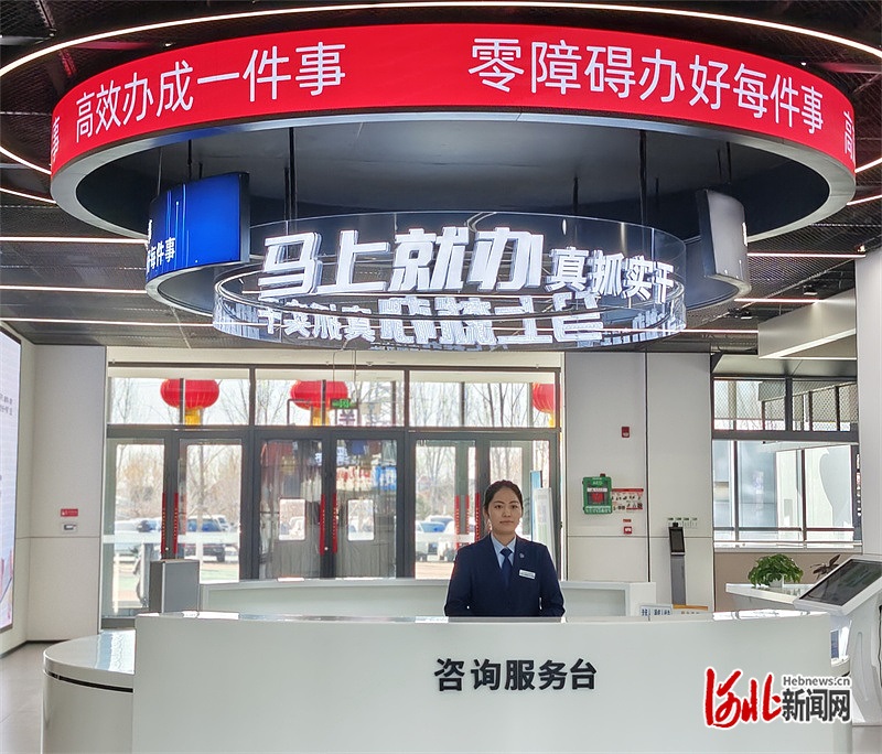 日前,雄安新区政务服务中心咨询服务台工作人员迎接办事群众的到来。 河北日报记者 曹铮摄