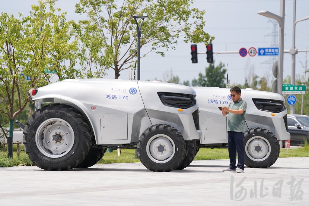 2024年8月1日,中国科学院雄安创新研究院筹建组成员杨波,展示操作鸿鹄智能农业机械装备。(河北日报资料片)河北日报记者 李畅摄