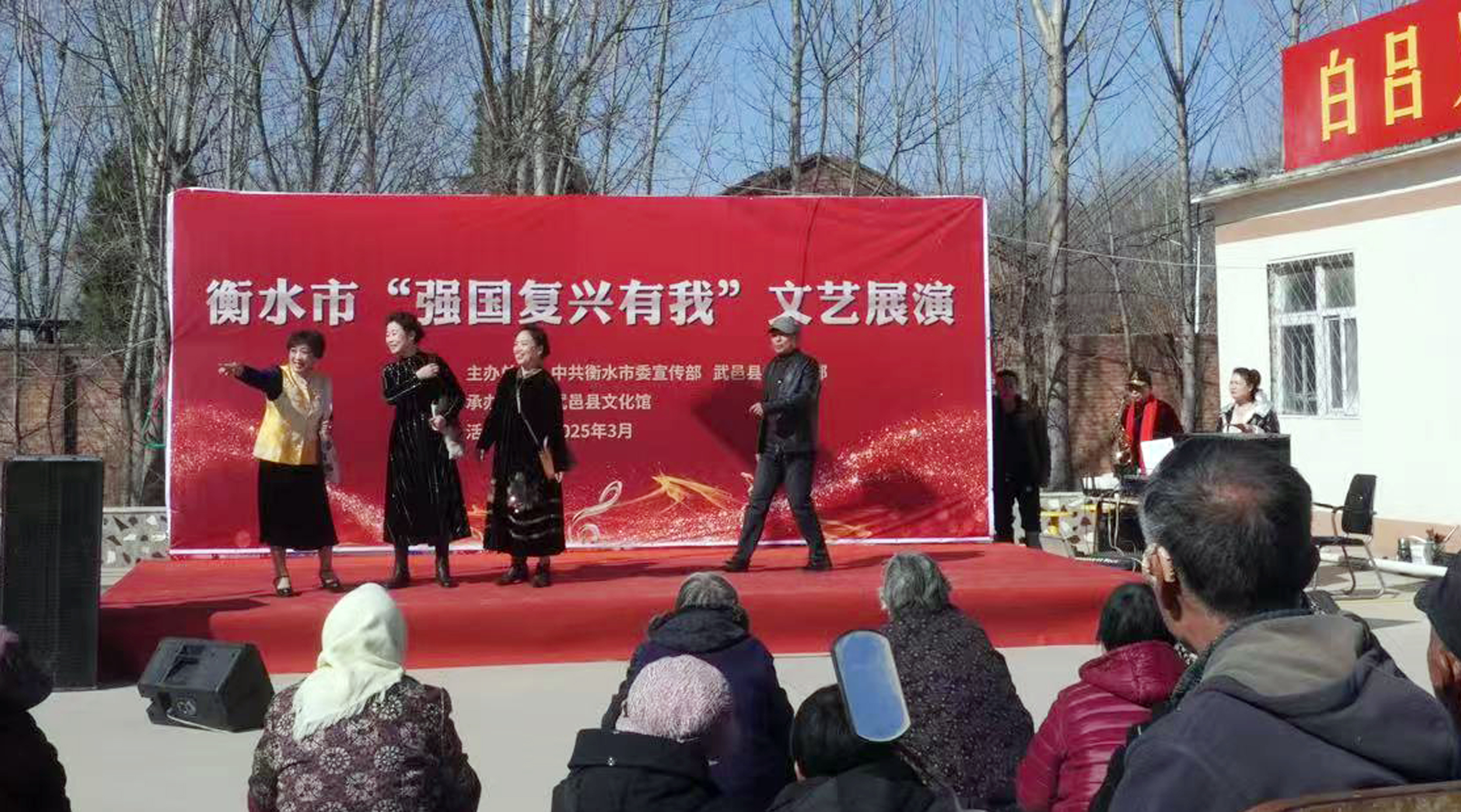 3月18日,由衡水市委宣传部和武邑县委宣传部联合举办的衡水市“强国复兴有我”文艺活动在武邑县赵桥镇白吕义村党群服务中心举行。这一场扎根乡土、贴近民心的文艺汇演,宛如春日里的一股暖流,滋润着现场每一位乡亲的心田。