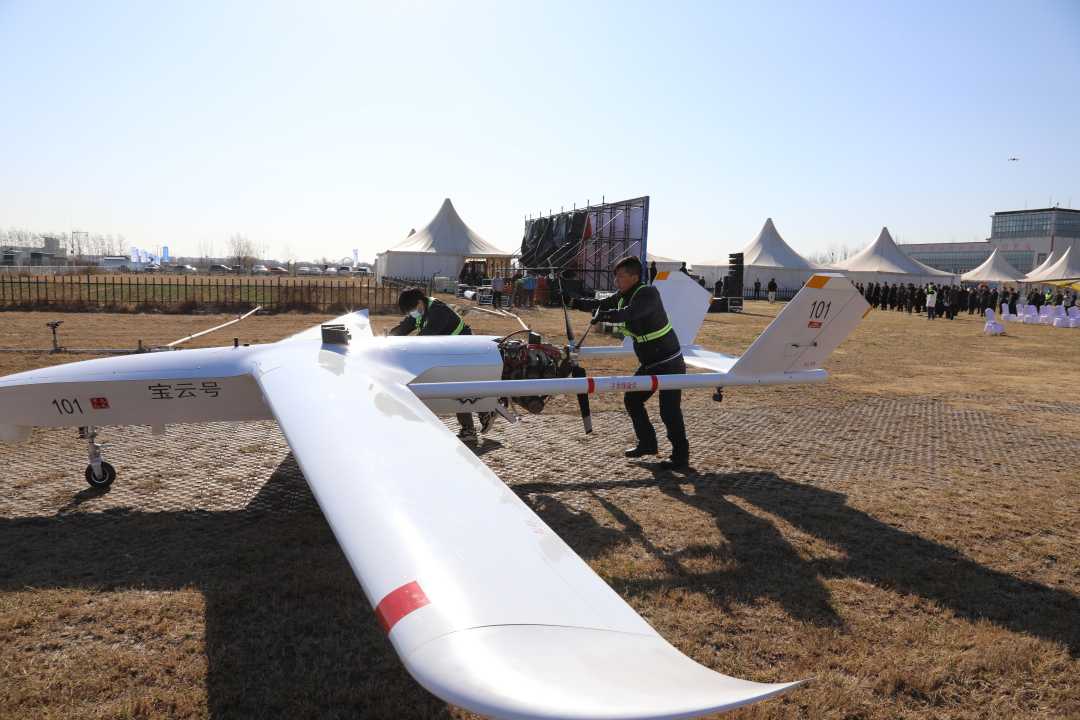 “宝云号”长航时大载重无人运输机首飞。薛涛摄