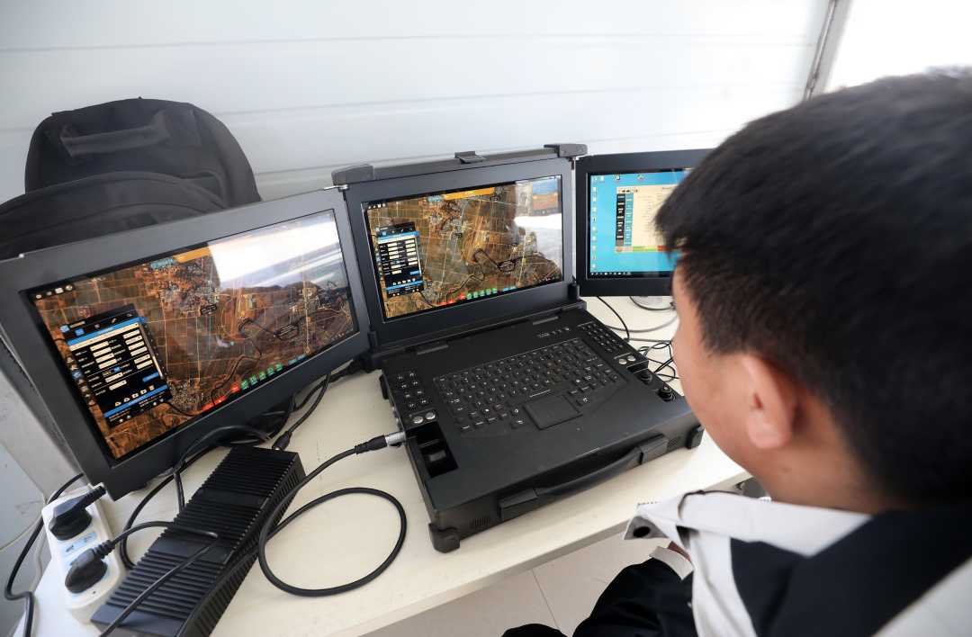 工作人员正在制定航线。陈康摄