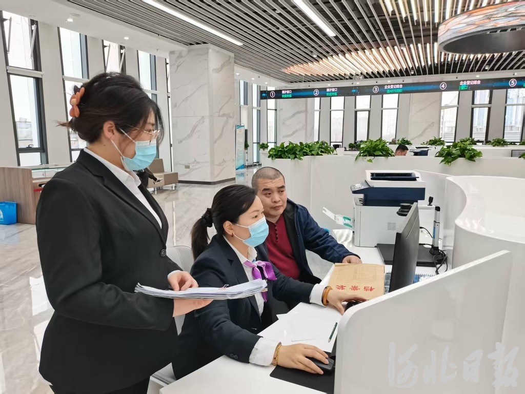 日前,保定高新区行政审批局窗口工作人员为企业办理跨区域迁移业务。王景超摄