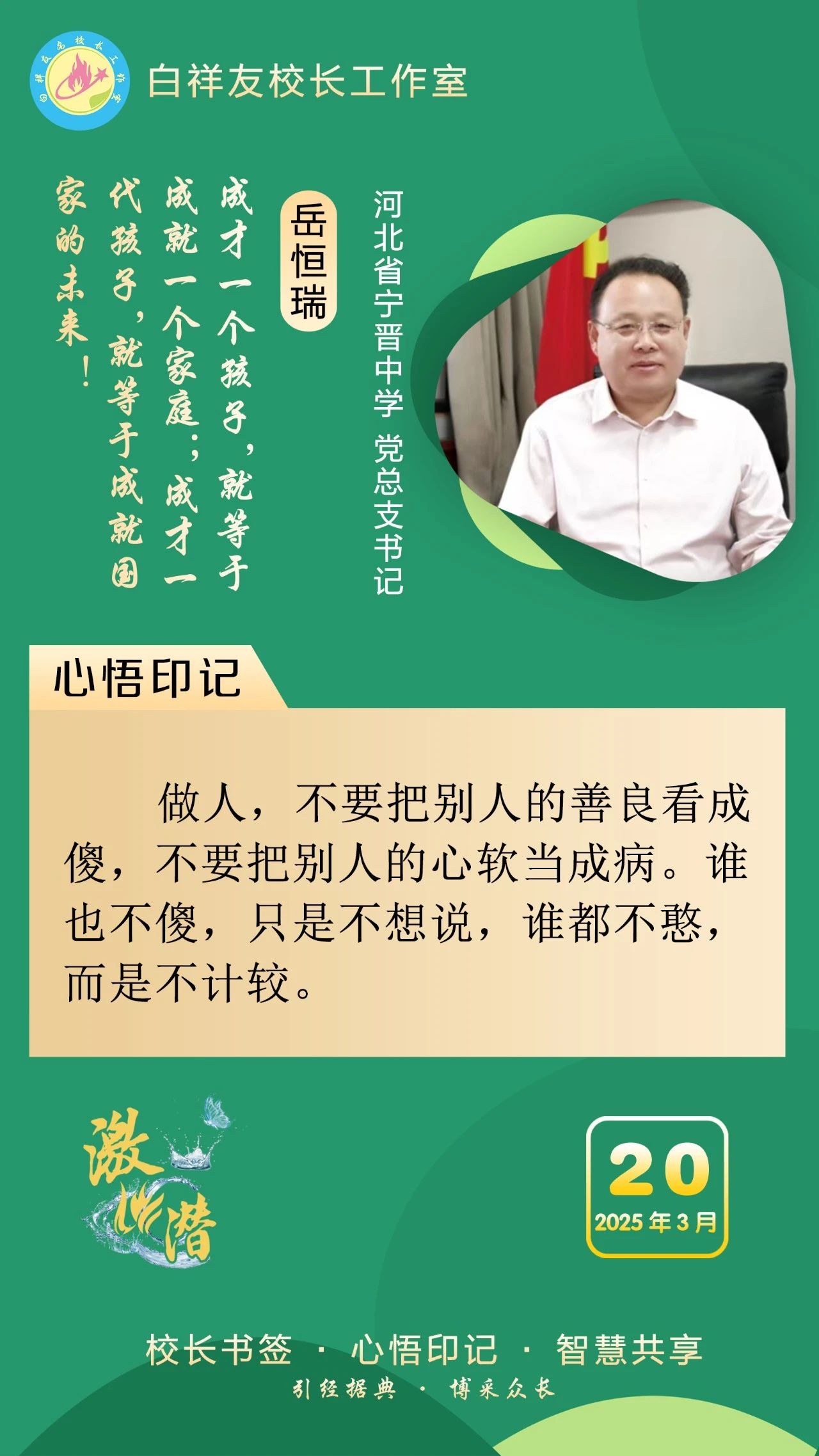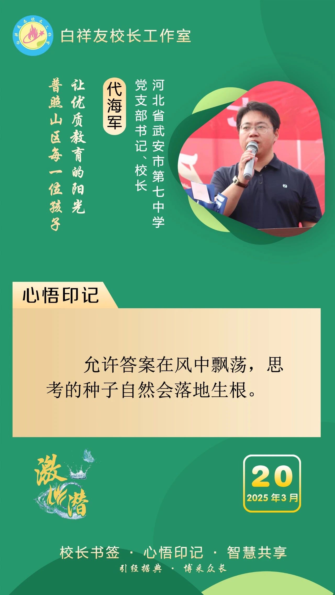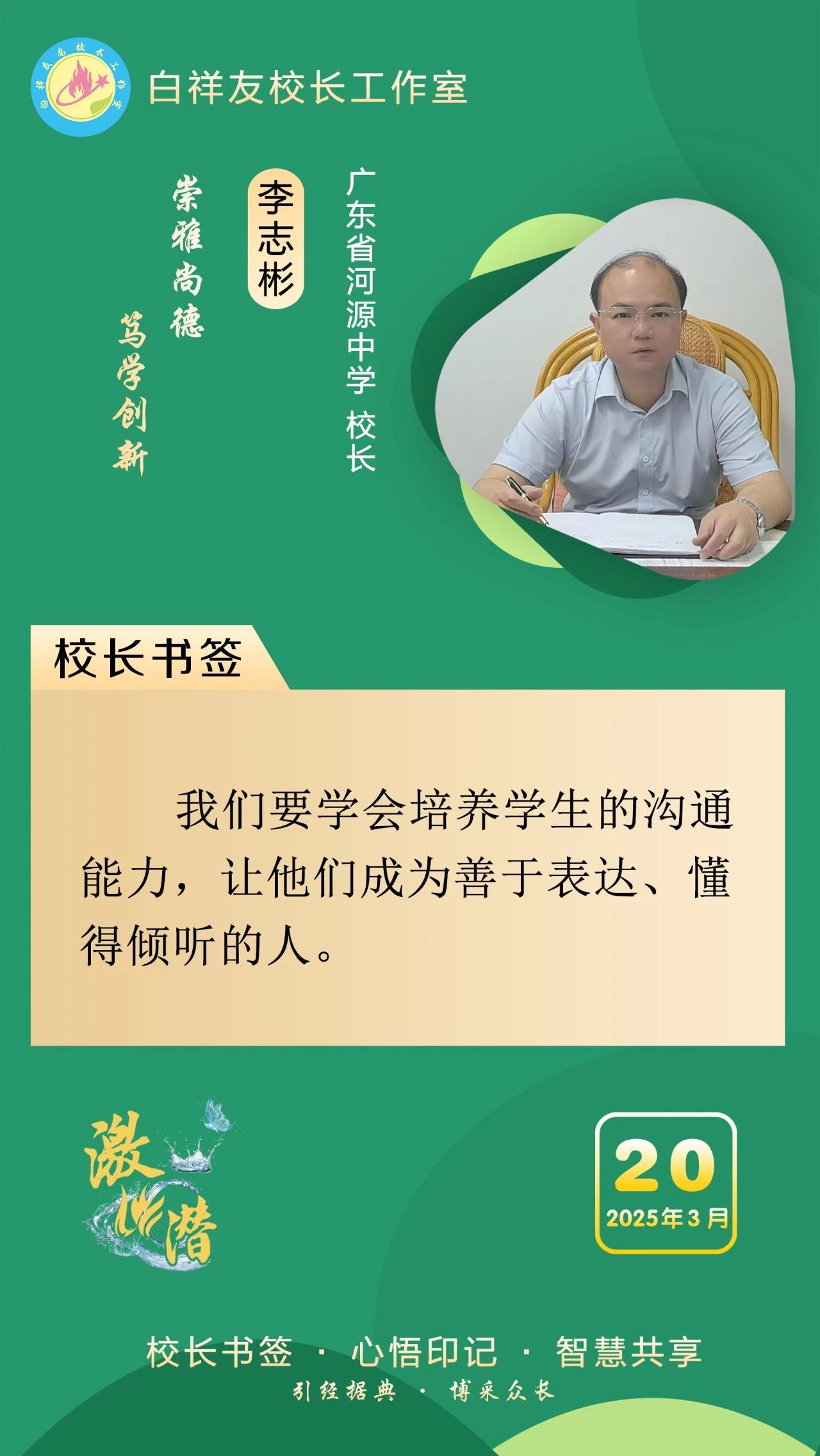 “白祥友校长工作室”成立于2019年4月,是教育部“国培计划”中小学名校长领航工程、河北省首批名校长工作室,目前省内外成员校56个。工作室坚持“资源共享、智慧共融、互助共赢”理念,已成为思想碰撞的交流场,资源共享的品牌站,成果展示的辐射源。