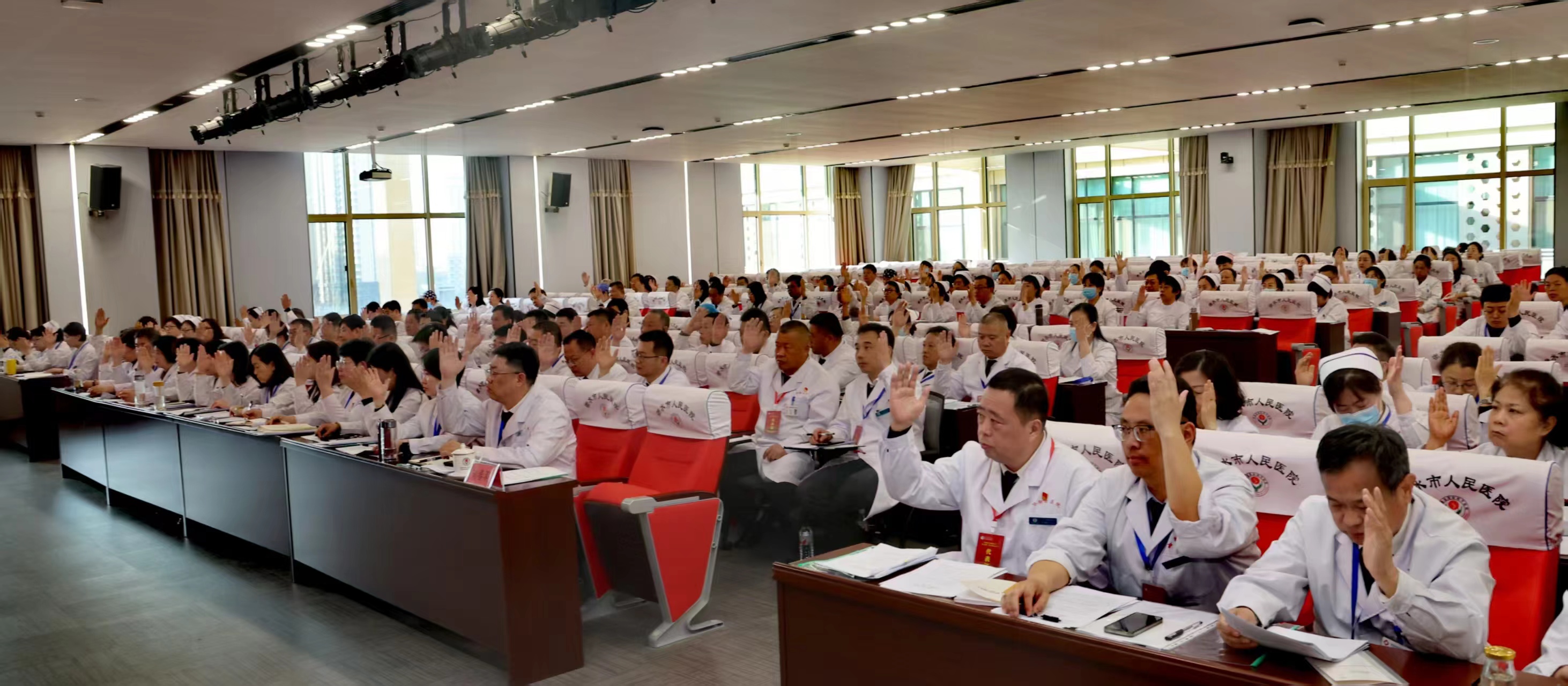 衡水市人民医院(哈励逊国际和平医院)职工代表举手表决。