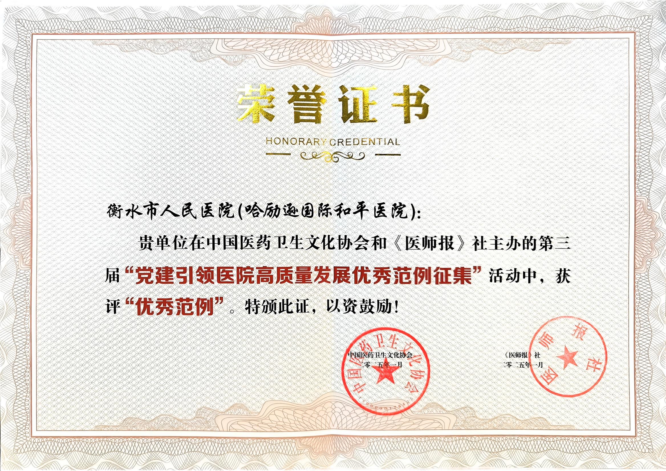 紧紧围绕“党建领院、改革立院、学研兴院、人才强院、质量治院、文化塑院”发展战略,秉持“办人民满意医院,做人民满意医生”的理念,衡水市人民医院(哈励逊国际和平医院)坚持党建引领,推动党建与业务深度融,为高质量发展“蓄力赋能”。