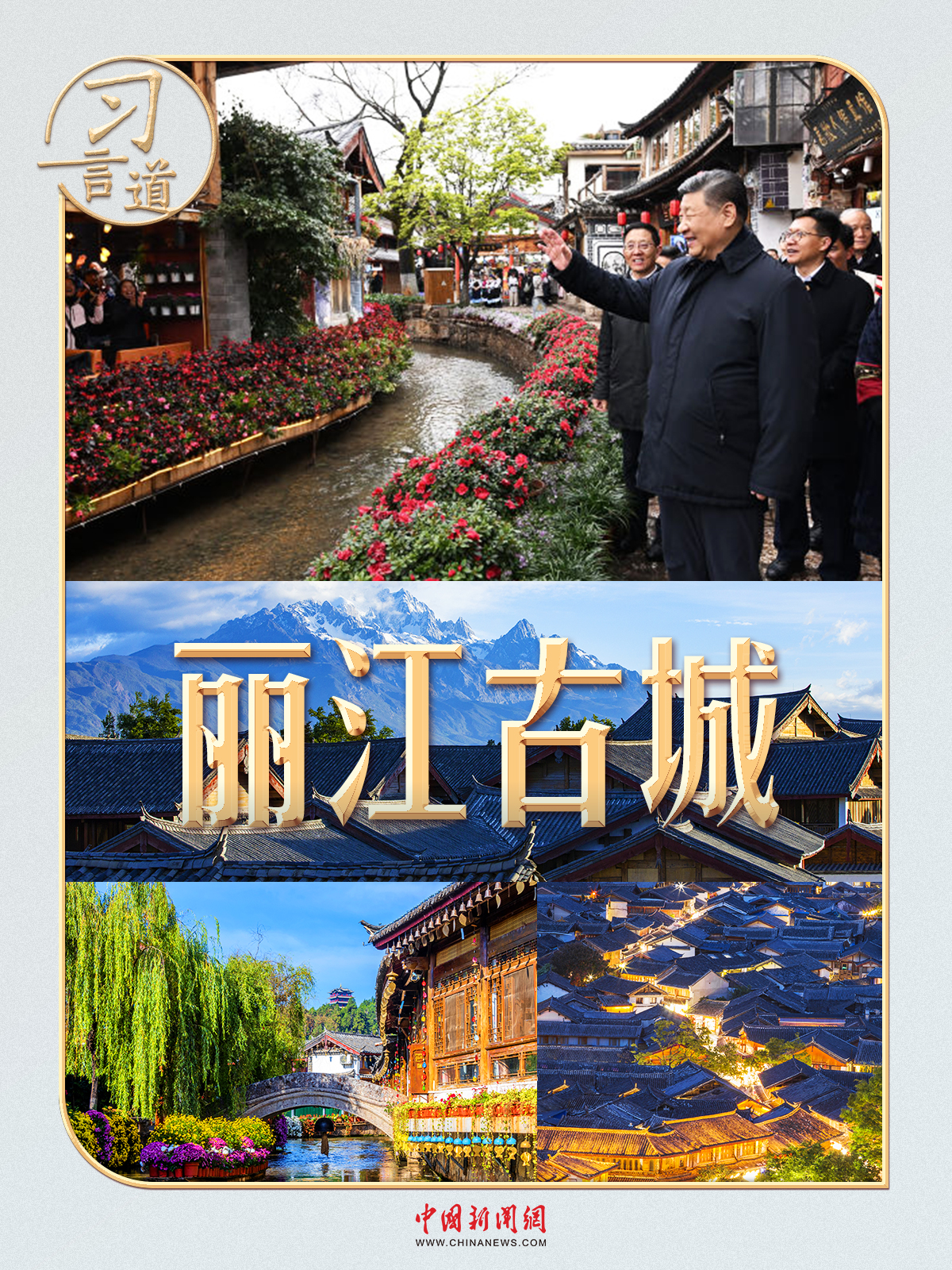 19日下午,习近平总书记来到云南丽江古城,沿着石板路边走边看。