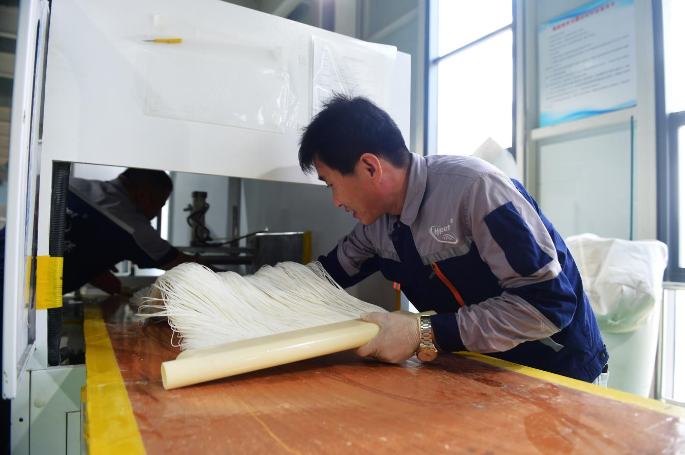 辐照是生产特种电线线缆的关键工艺,但加工设备昂贵,中小企业难以独自负担。为解决企业生产需求,河间市引导两家龙头企业投资2000万元建设了当地第一个辐照加工车间,上马两台辐照设备,不仅满足了企业自身生产需求,还可帮助当地20多家企业进行电缆辐照加工。从2024年3月份投产后,两条生产线一直马力全开,订单已经排到今年5月份。