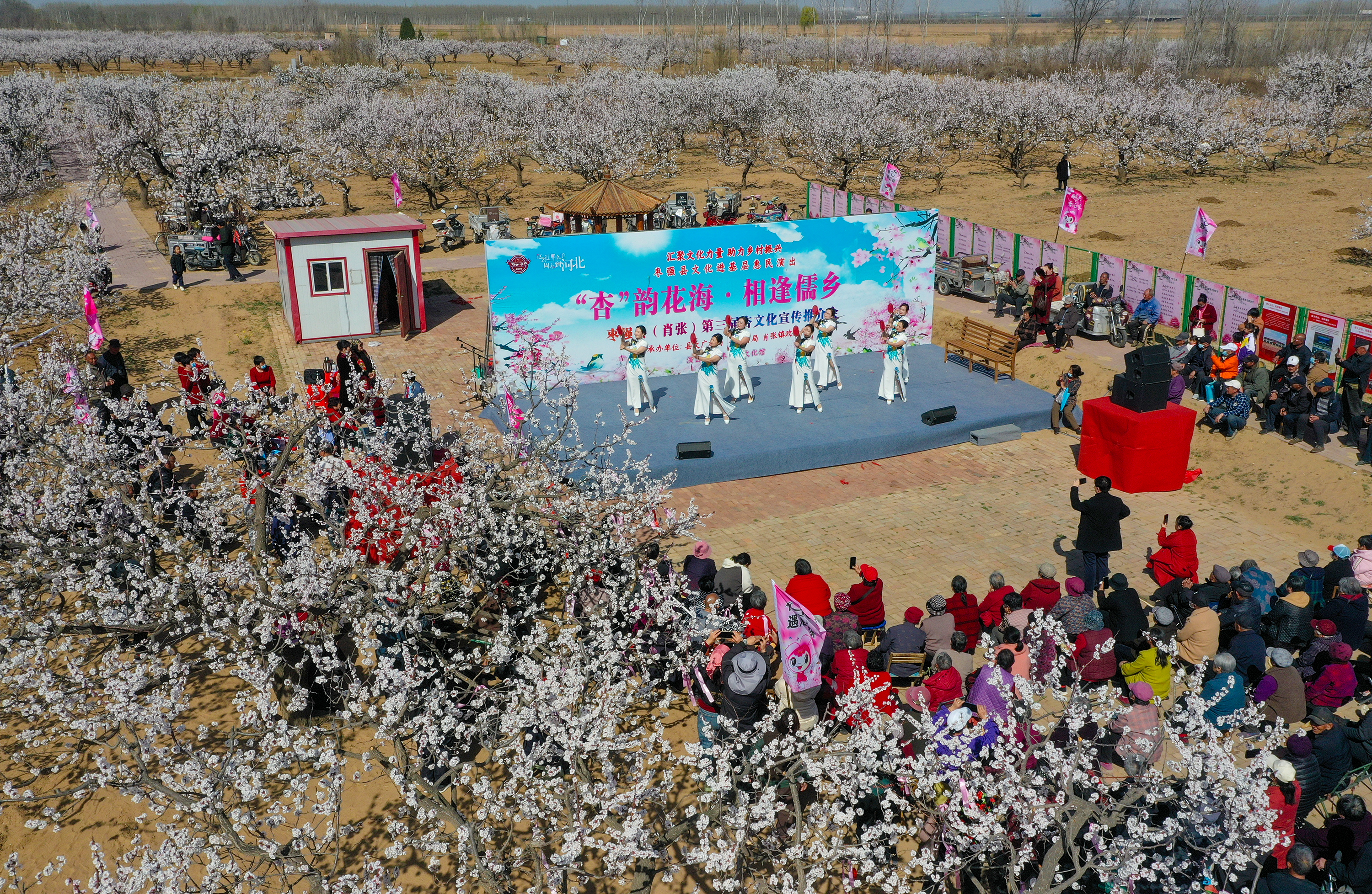 除了自然美景,杏林中丰富多彩的活动也为游客带来独特体验。文艺表演、传统民俗展示、非遗展演及美食娱乐活动接连上演,让游客尽享农文旅融合盛宴。