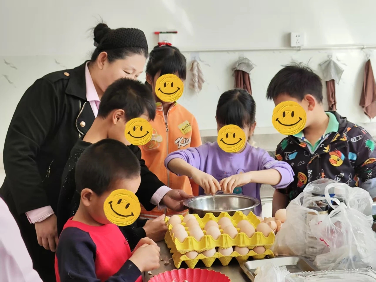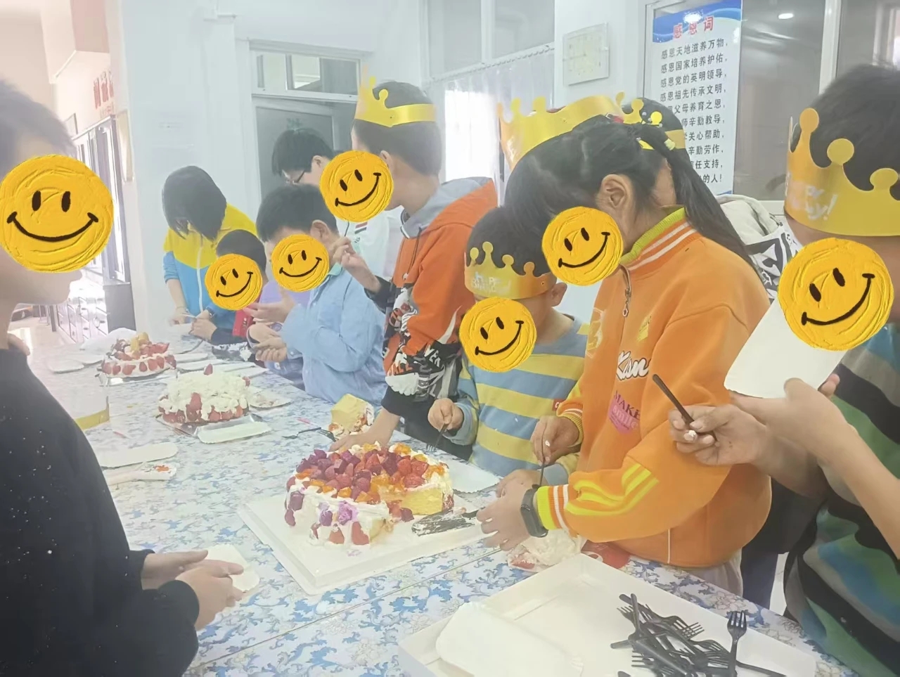 美好“食”光活动环节,志愿者召集孩子们共同参与,亲手体验生日蛋糕的制作。通过一双双小手的拼接,三个漂亮的蛋糕呈现眼前。随着生日歌的响起,大家围坐在一起,吹灭蜡烛,许下心愿,那一刻,幸福与温暖在每个人心中流淌。