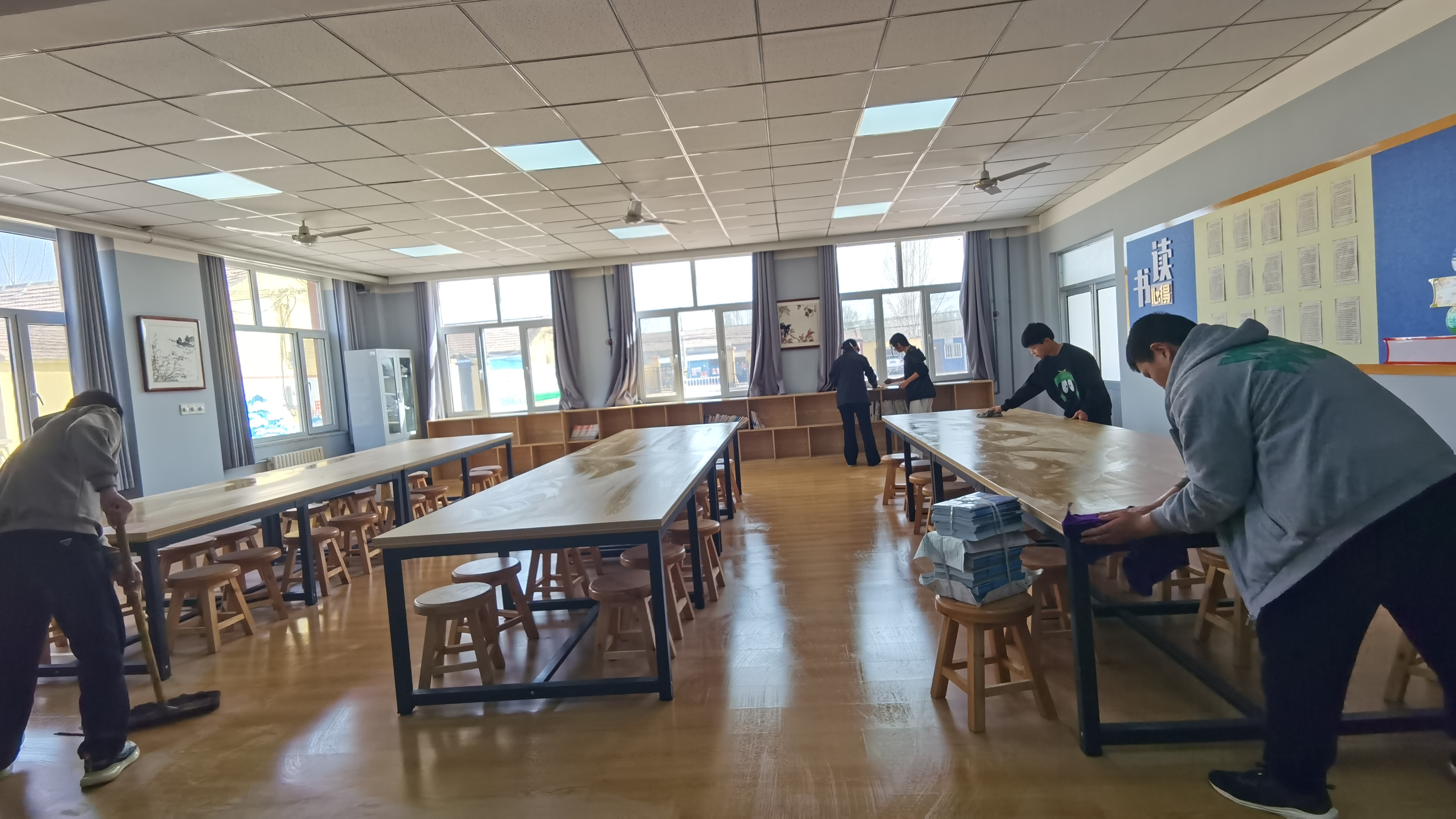 指尖劳动,打造图书馆新貌。在别开生面的图书馆整理活动中,同学们热情高涨,穿梭于书架之间,细心擦拭书架,将书籍细致分类,在大家的共同努力下,图书馆面貌焕然一新。