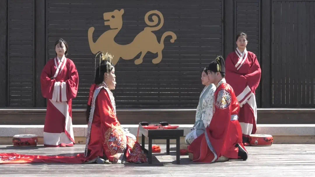 邂逅之旅伊始,男女青年们陆续登上游船。在碧波荡漾的衡水湖面上,雕花木舫缓缓而行,青年们欣赏两岸风景,只见湖边垂柳如烟,嫩绿的丝绦拂过水面,桃花、杏花、樱花等争相绽放,让大家心中荡起阵阵涟漪。在欢声笑语中,木舫缓缓靠岸。随后,大家又来到滨湖驿站天台,三三两两交流观景,眼前的美景让大家顿然放下了初识的拘谨。在冀州古城遗址,一场别开生面的汉服婚礼展演正在排练中。在男女青年们的眼前,新人身着华美汉服,在司仪的引导下,逐一演绎“沃盥”“同牢合卺”“结发执手”等传统礼仪,新人共饮合卺酒、互赠发束的场景,生动诠释了“同甘共苦、白头偕老”的婚恋内涵,也打动了在场每位男女青年的心。随后,大家继续游览古城遗址,体验了投壶、喂鸽子等小游戏。在邂逅之旅尾声,男女青年们步入玉泽园,在这座白墙黛瓦的园林式婚姻登记服务中心里,大家参观了书法家东厢房、信都书院、锦书喜事、婚登处和单身信息长廊等,在传统与现代的婚俗变革中,感受新时代简约、文明、健康的婚嫁新风尚。