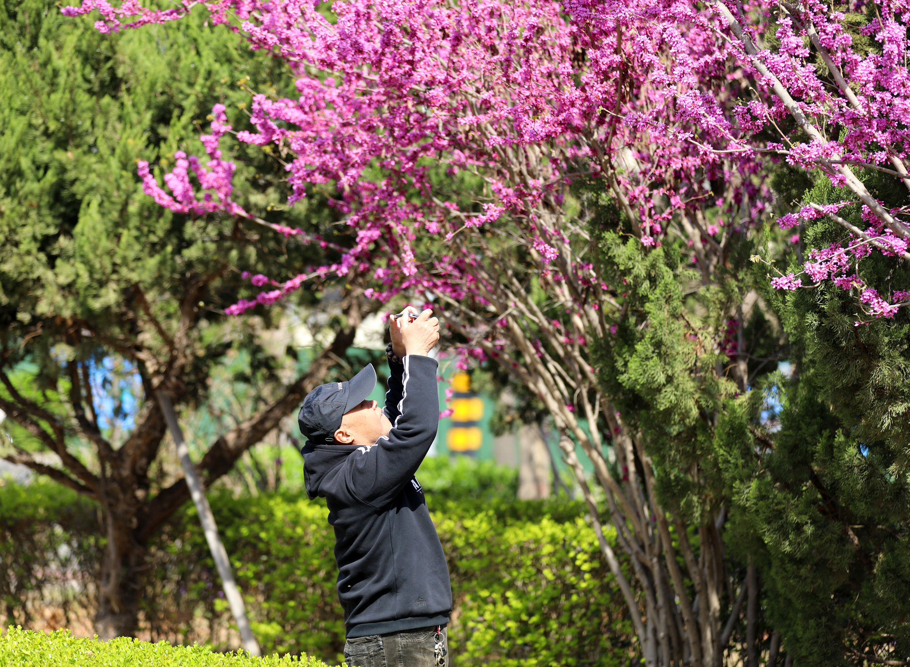 漫步在花丛间,不少市民停下了匆匆的脚步,静静地感受着大自然的美好。他们或闭目深呼吸,尽情享受着花香的萦绕;或三五成群,谈笑风生,分享着春日的喜悦。还有一些摄影爱好者们,背着专业的相机,寻找着最佳的拍摄角度,只为留下这最美的光影。镜头中,花朵的娇艳与市民们的笑脸相映成趣,构成了一幅幅温馨美好的画面。