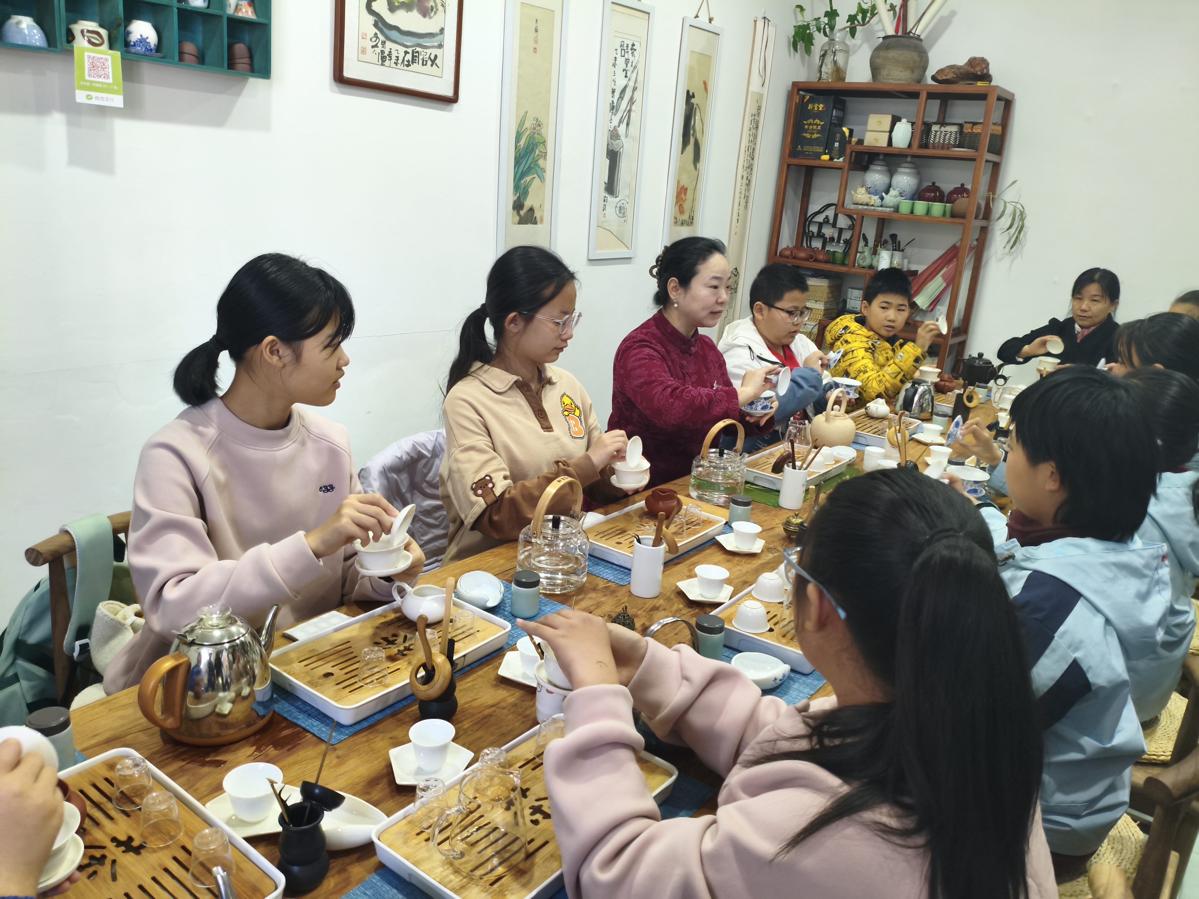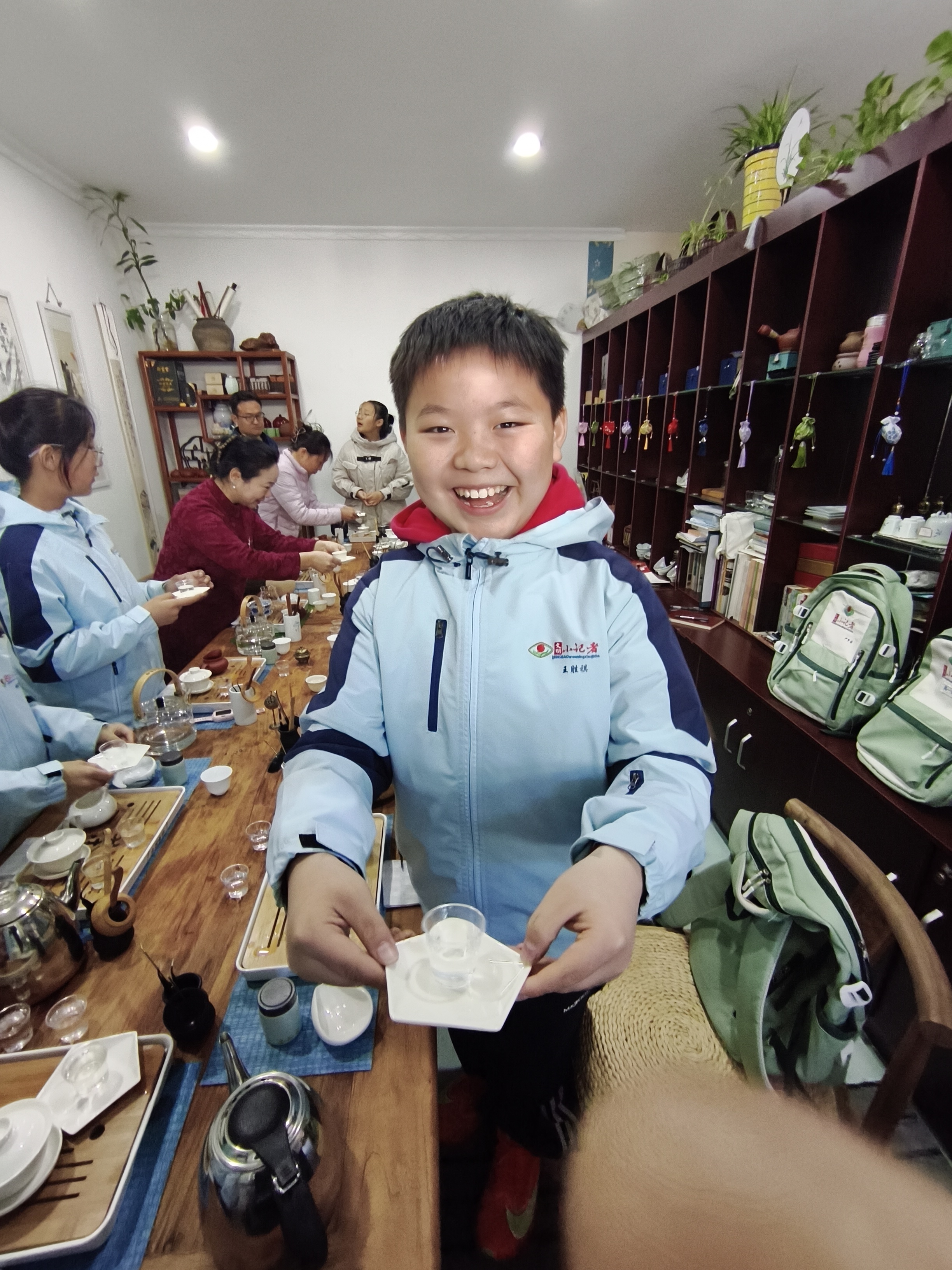 随后,郭春香带领小记者进入茶艺礼仪的高雅境界。从入座的姿态到奉茶的顺序,每一个动作、每一个细节都蕴含着浓郁的文化韵味,展现中华传统尊重与谦逊的文化内涵。孩子们仿佛穿越时空,感受到古人在茶席间的彬彬有礼,感受到了千年茶文化传承的力量。